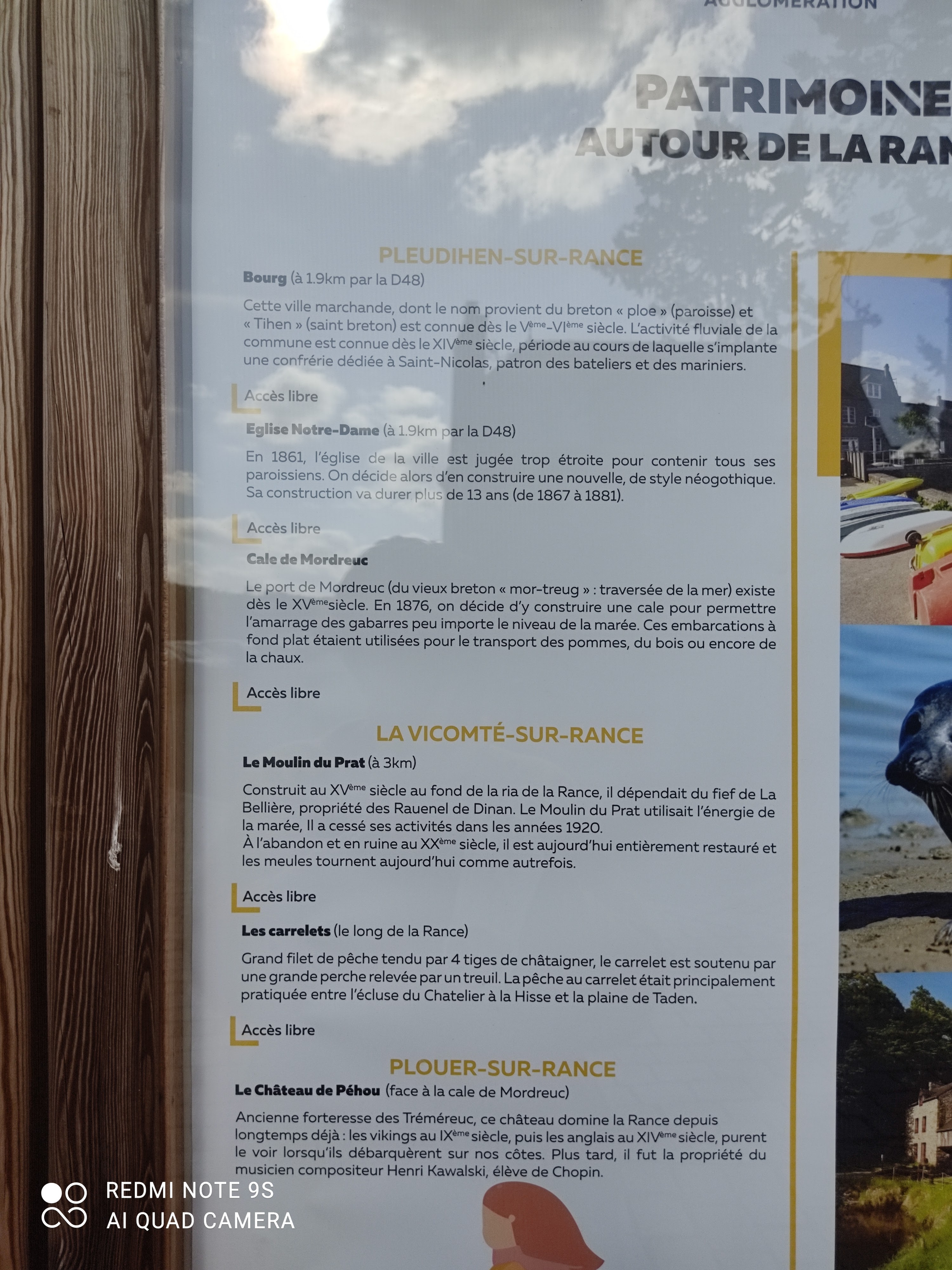 Un bon point de départ pour le canoë kayak vers l'écluse du chatelier, et en prime l'opportunité de voir le veau marin ! Des sentiers sympas le long de la Rance également...