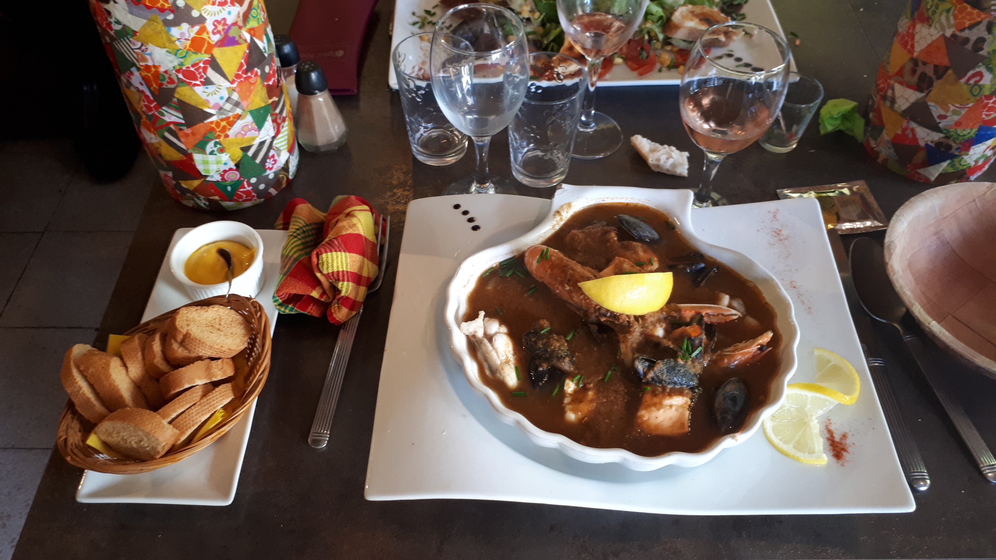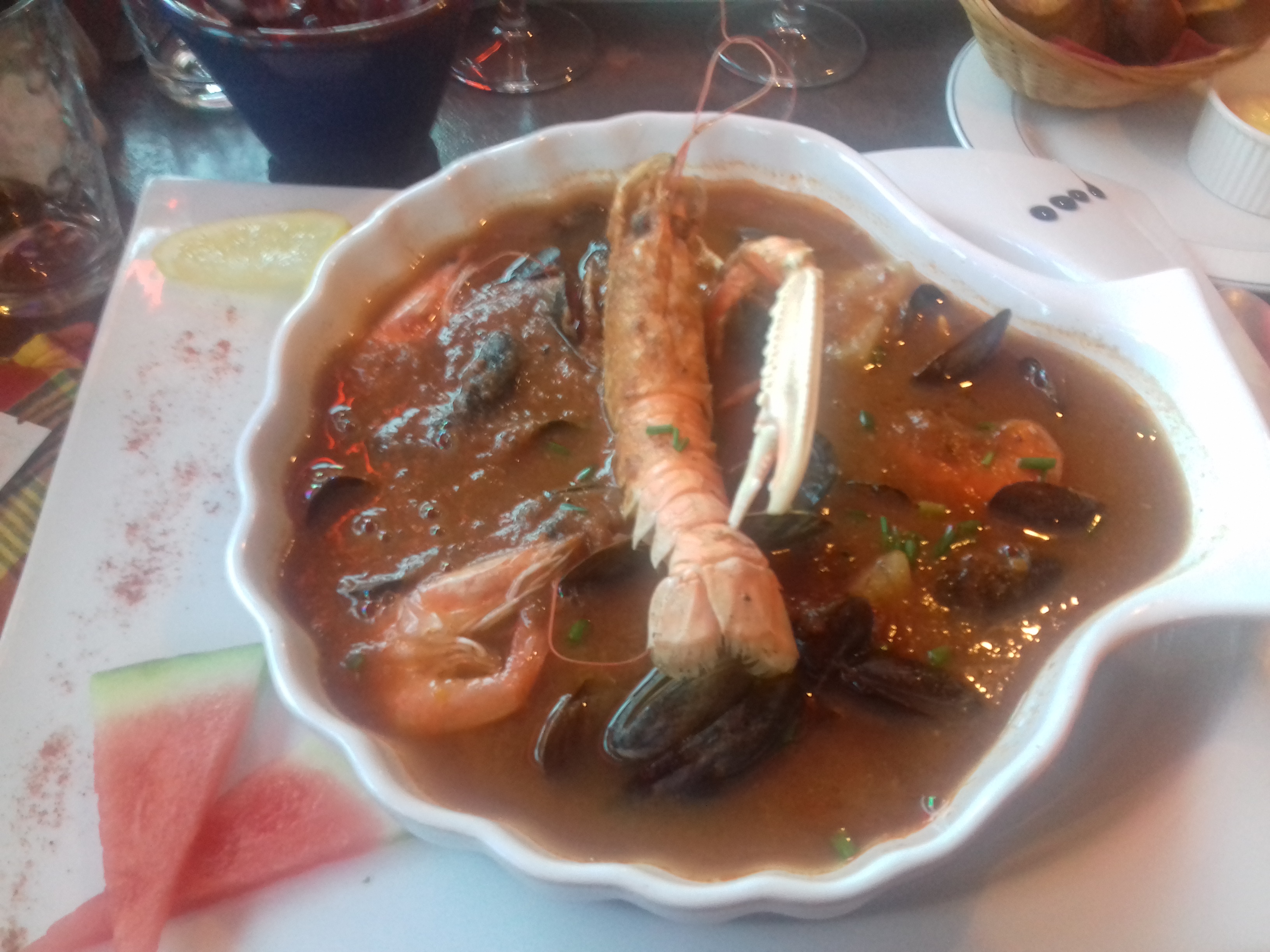 Bouillabaisse arcachonnaise maison délicieuse avec des produits frais. Cadre atypique et services agréable.