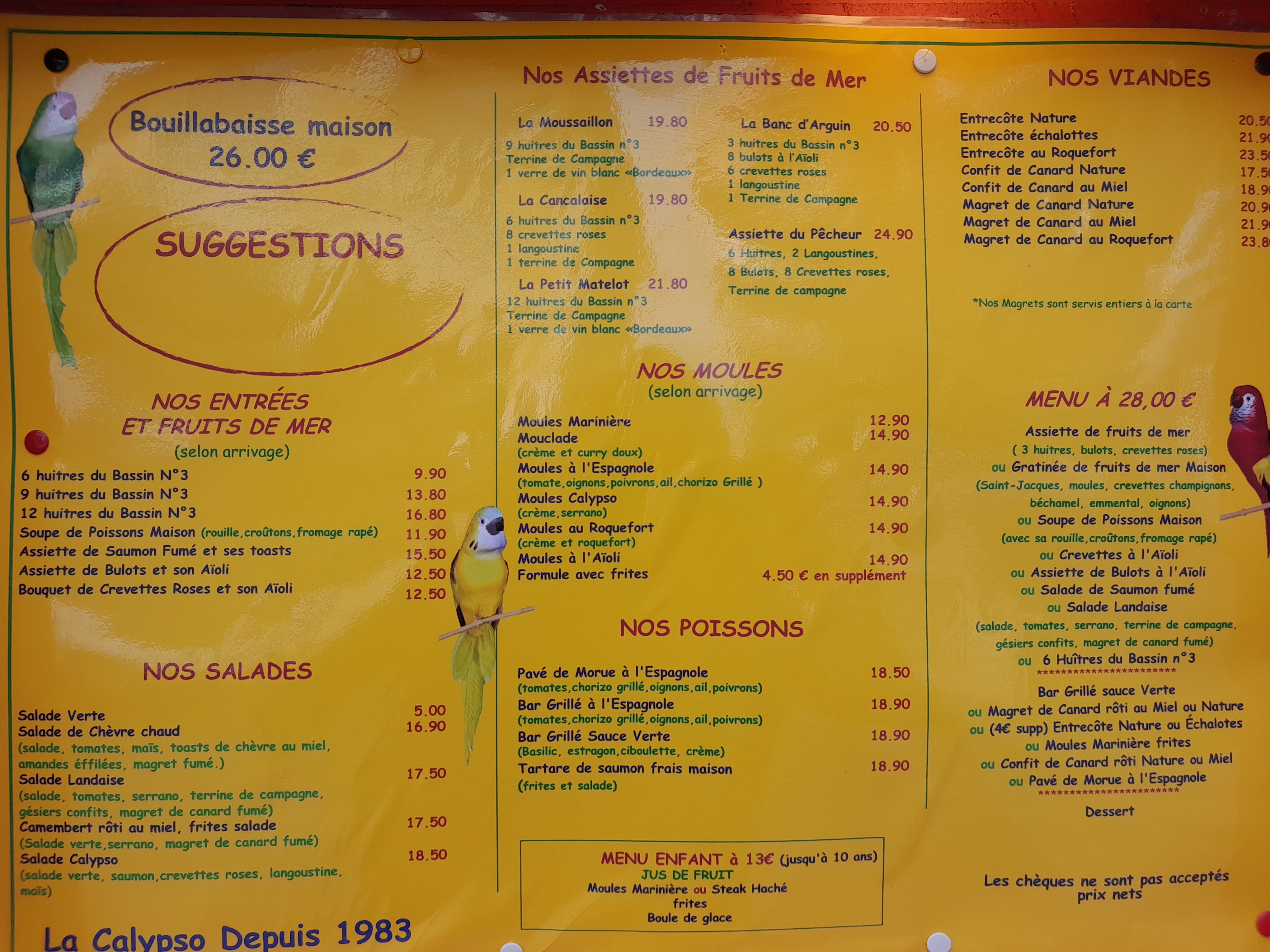 Derrière un cadre un peu désuet se cache une excellente cuisine familiale, copieuse et chaleureuse. La bouillabaisse d'Arcachon (pourquoi pas !) est délicieuse et le café gourmand porte vraiment bien son nom. Une jolie surprise.
