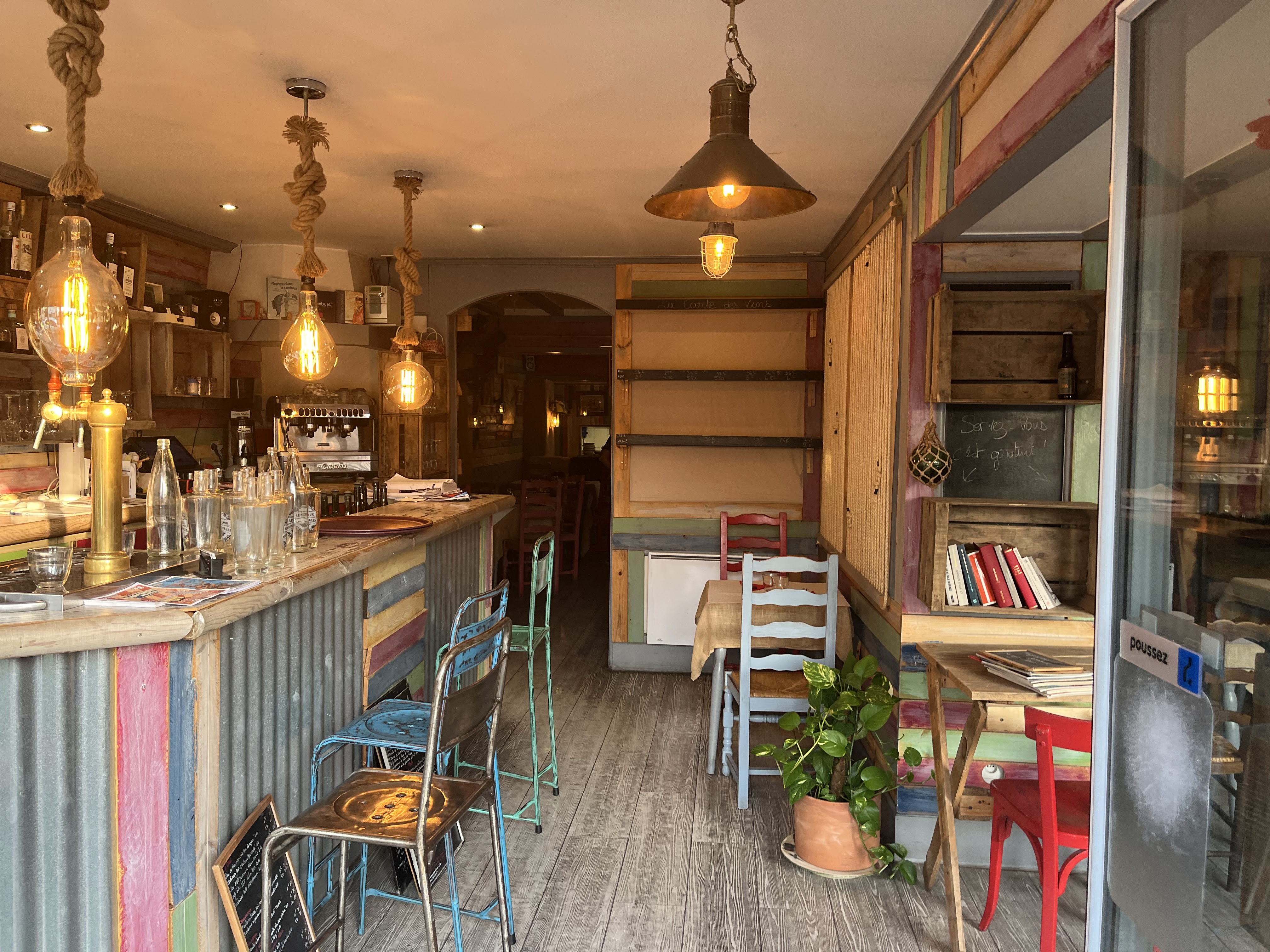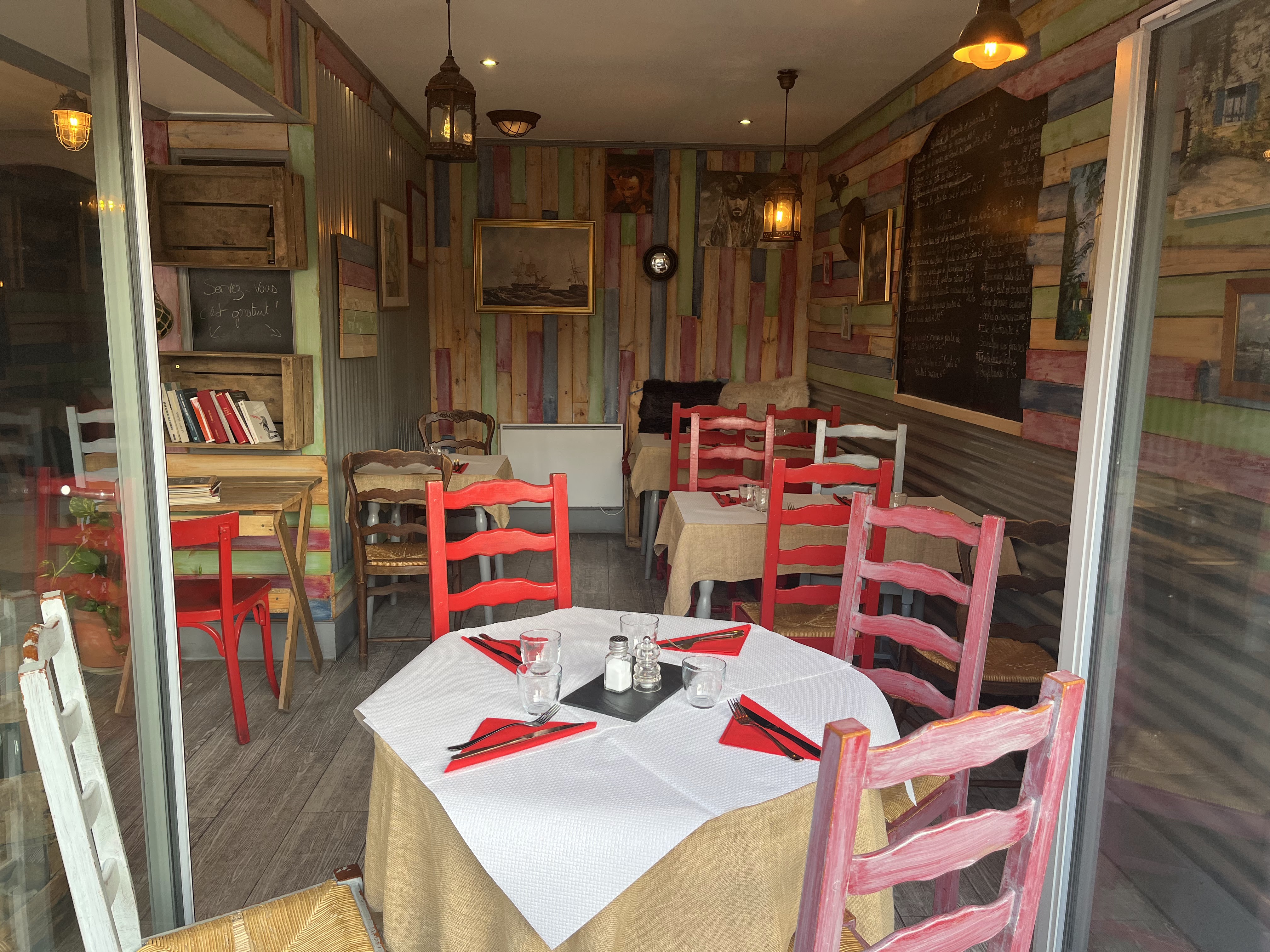 bonjour à l'équipe, nous y avons mangé samedi soir alors que nous n'avions pas réservé (merci donc). Nous avons adoré l'endroit (le décor corsaires !! avec du bois au mur, peintures, lanternes, et le repas fait maison était excellent. le menu du soir à 15.50 (entrée plat dessert) a été très apprécié pour le prix et la qualité des propositions; Bravo donc à léquipe nous reviendrons !!! merci pour cette belle soirée improvisée, Céline et Franck.