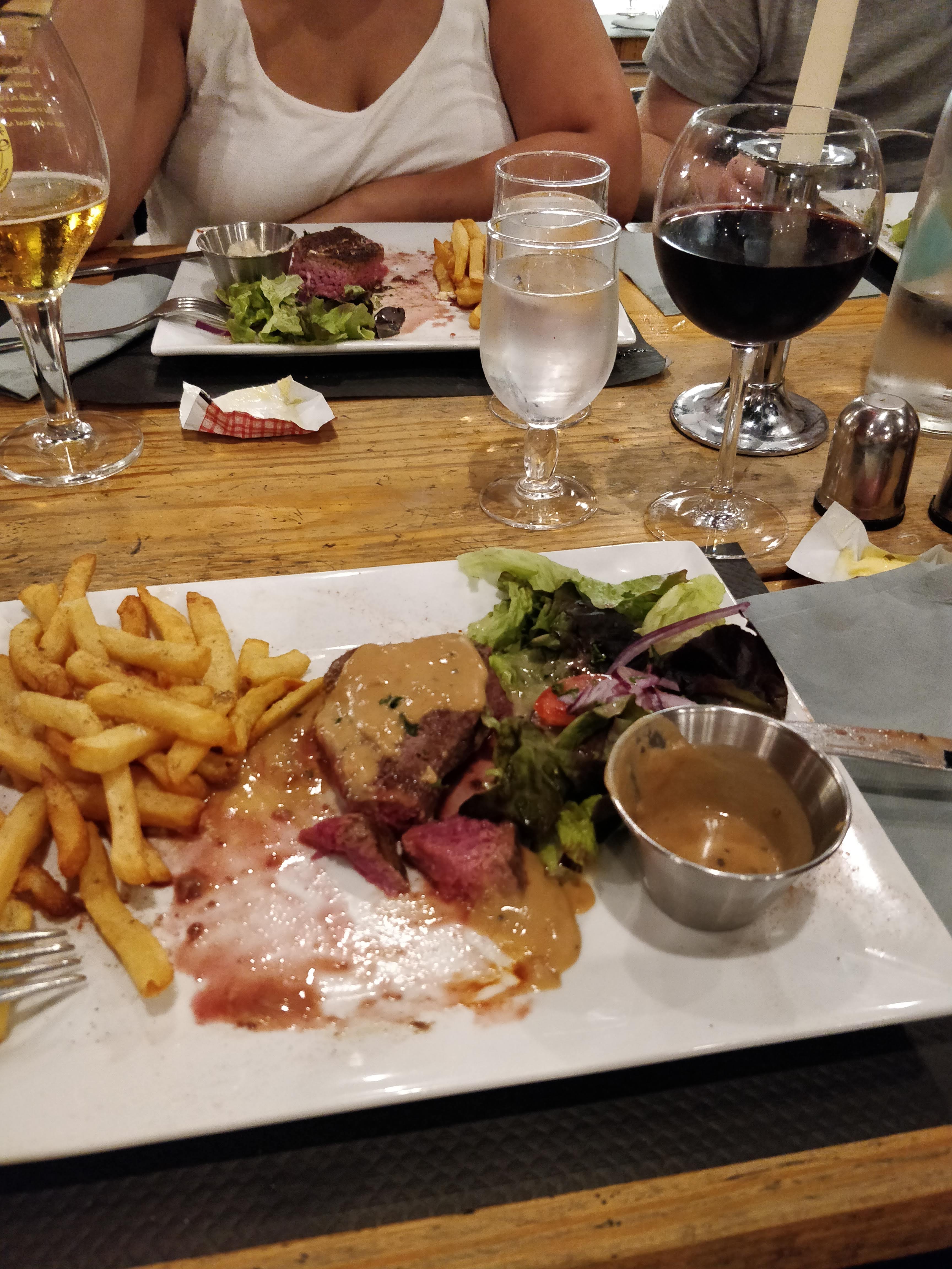 J'y suis passé pour diner avec ma compagne ce samedi 15 avril. Nourriture exquise et fraiche ! Plats copieux et viande excellente ! Vin très bon. Personnel super sympa et décoration superbe et vintage. L'ambiance générale est géniale. En plus on s'est retrouvés entre un gars habillé en superman et 15 pote à lui pour un mariage et un groupe de 27 personnes pour un mec qui partait en retraite ! Autant dire qu'il y'avait de l'ambiance ! 🤣🤣🤣 ! Un beau bordel mais perso étant belge ça nous a bien amusé ! J'y retournerais à coup sur si je repasse dans le coin ! Et mention spéciale à la jeune blonde qui m'a fait goûté le vin ! Adorable et pro ! 😊😎