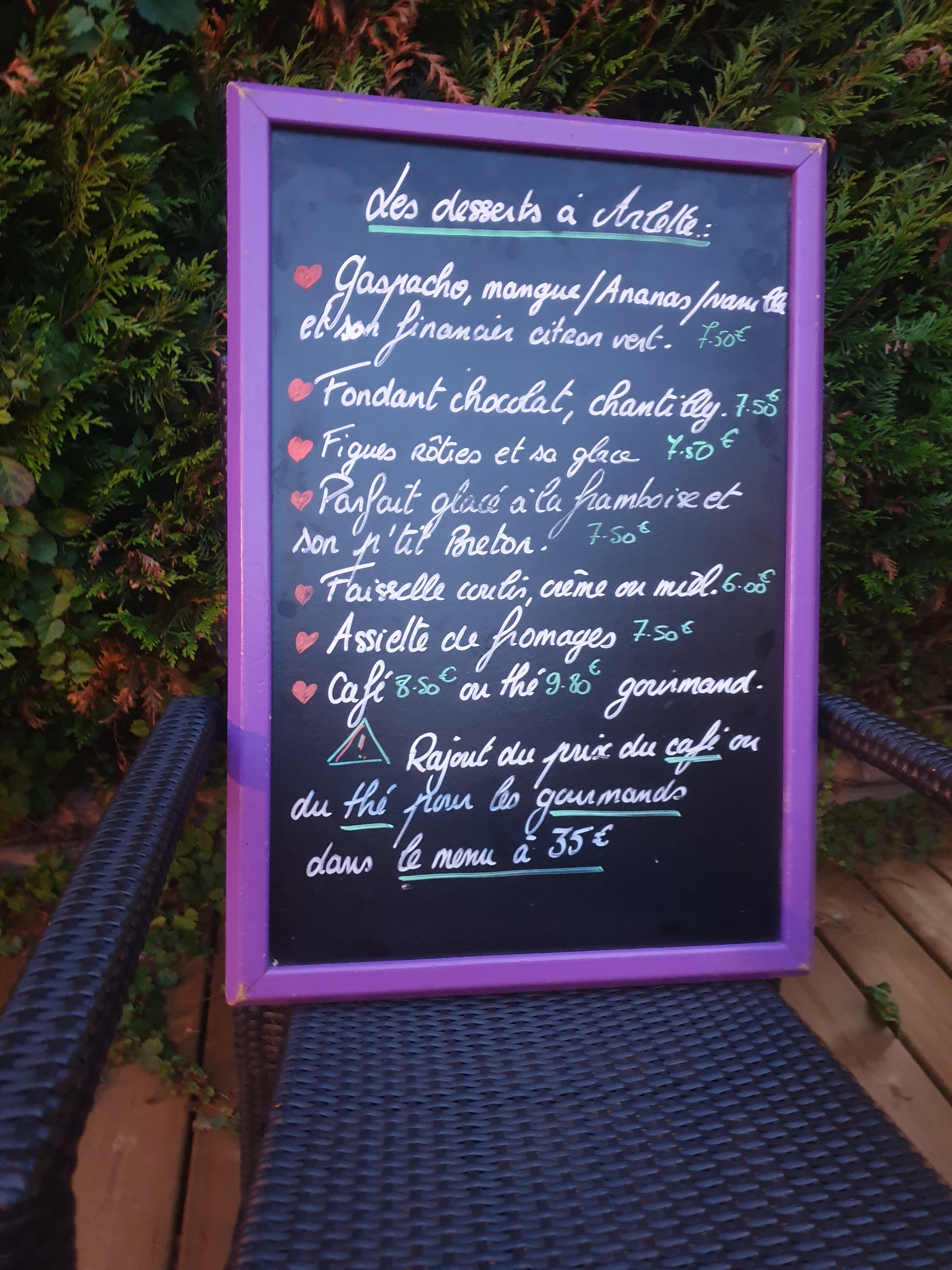 Grande déception pour ce dîner. Nous avons l'habitude d'y aller dîner sur leur jolie terrasse d'été, mais hier, cela a vraiment été décevant : une carte avec très peu de choix, aucune carte de vins et quasiment aucun choix de dessert à part le café gourmand.
