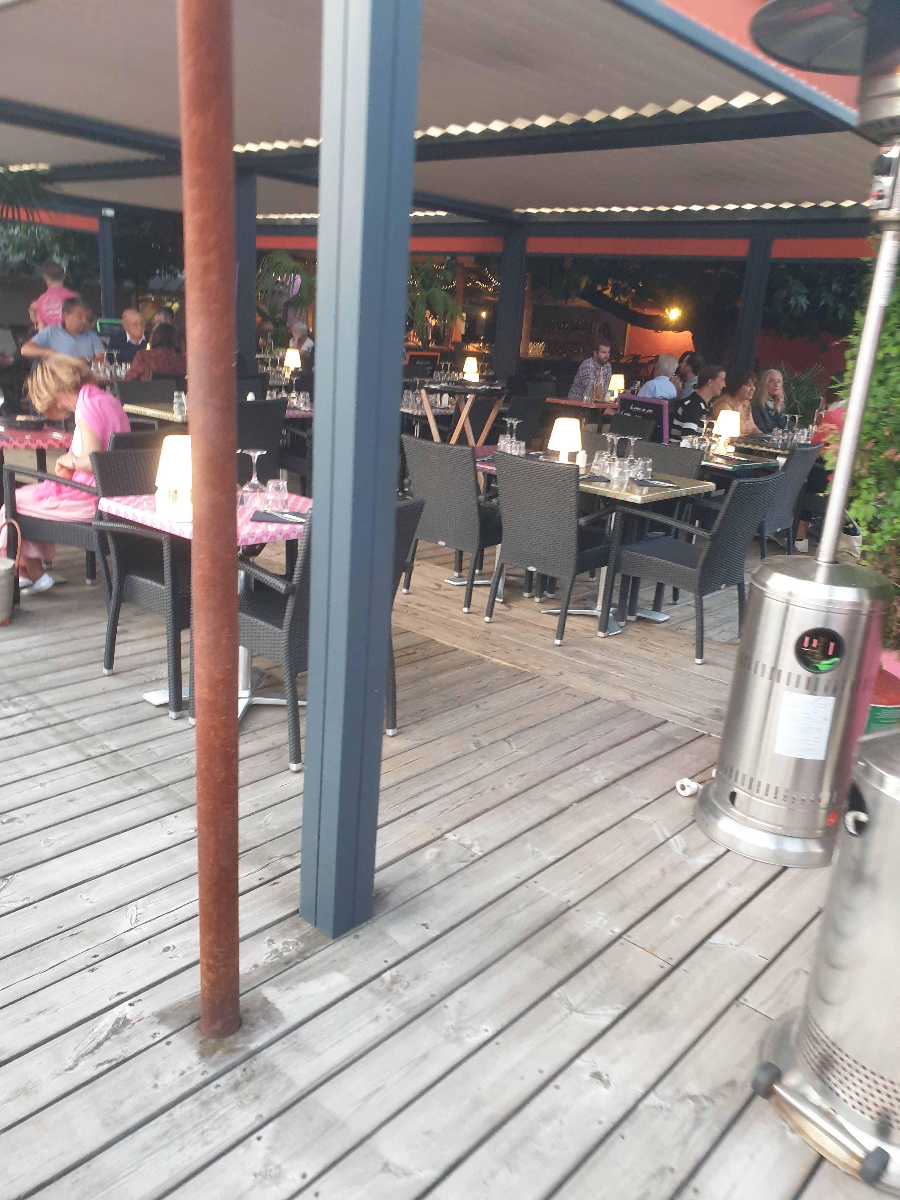 Restaurant avec un joli cadre. Des bons produits dans l assiette. Par contre le serveur pas très souriant voir pas aimable. 3 malheureux chauffages pour toute la terrasse, mais ils on fournit des plaids. On attend toujours les cafés qu ils on oublié.