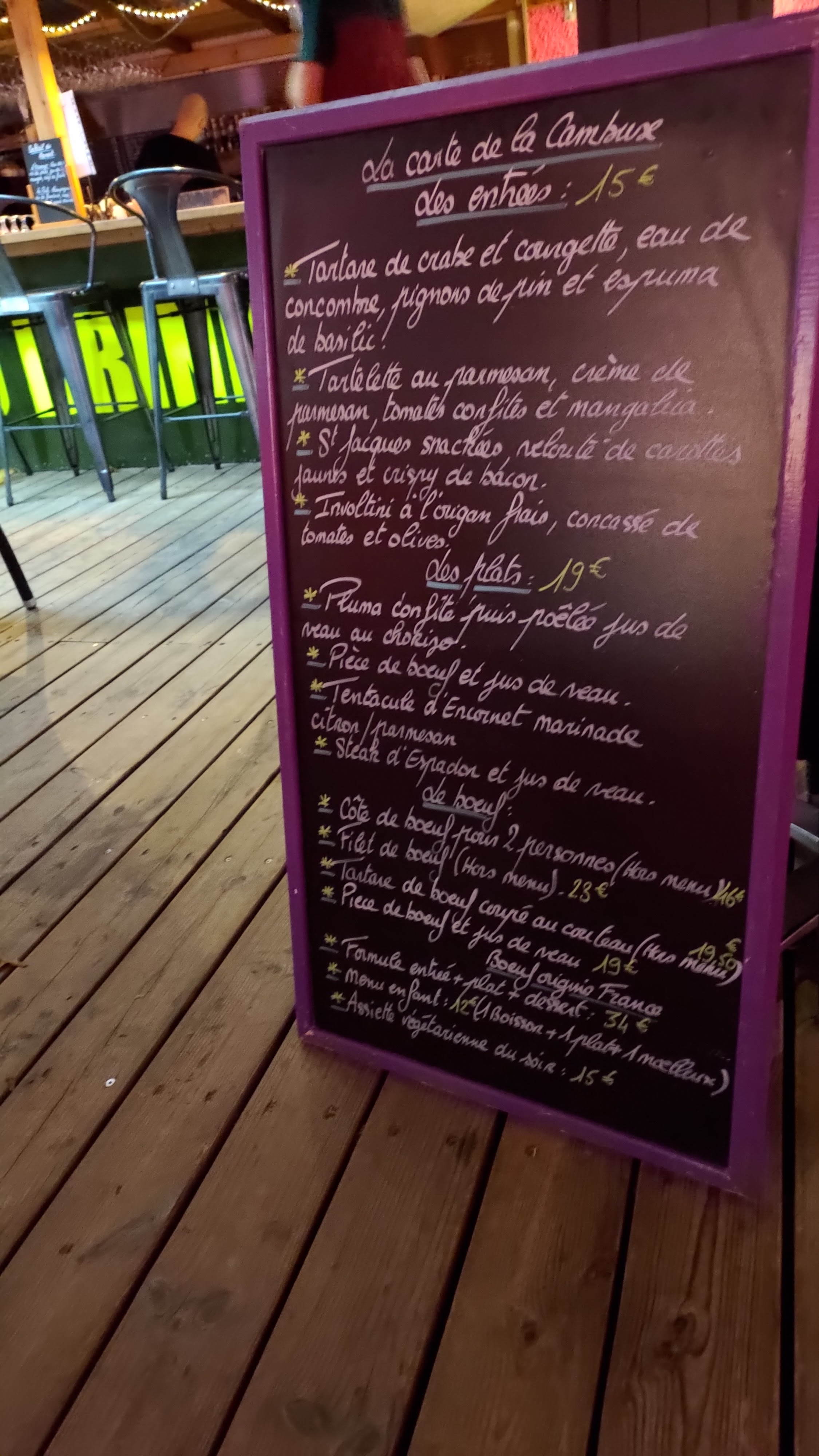 Super cette cambuse. Nous allons y déjeuner assez souvent depuis 3 ans. La qualité est toujours au rendez vous. Les viandes, les poissons cuit à la perfection. Cadre chaleureux et accueillant. Carte des vins ok aussi. Je recommande 😀😀😀