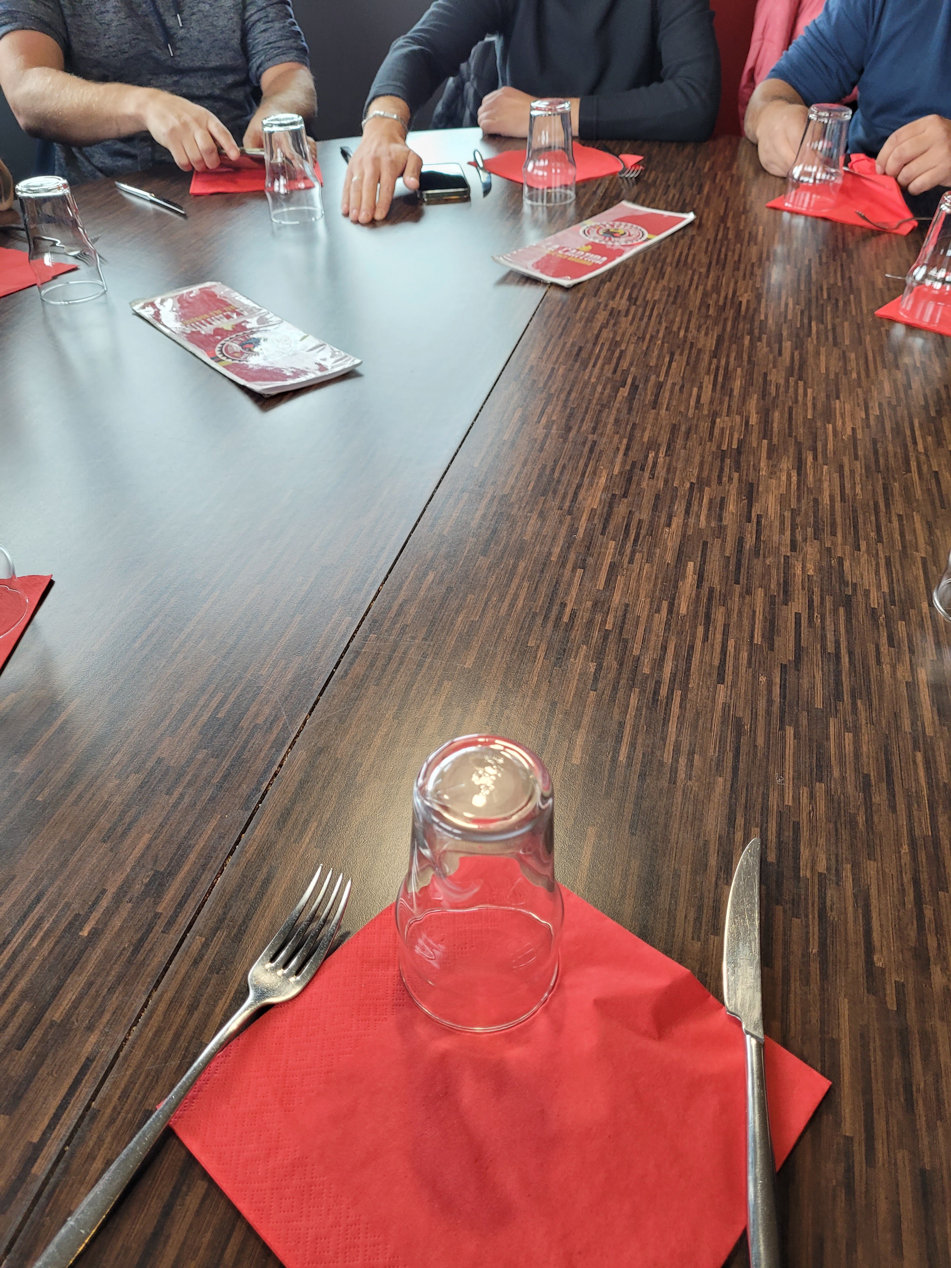 Alors pour commencer, il fait très froid, dehors il fait -3 et aussi à l'intérieur, ensuite les filles font que de raconter des conneries sur les clients, et nettoyage des tables pendant qu'on mange, ça sent fort le produit, on ne sent plus la viande, bon voilà, à vous de voir...