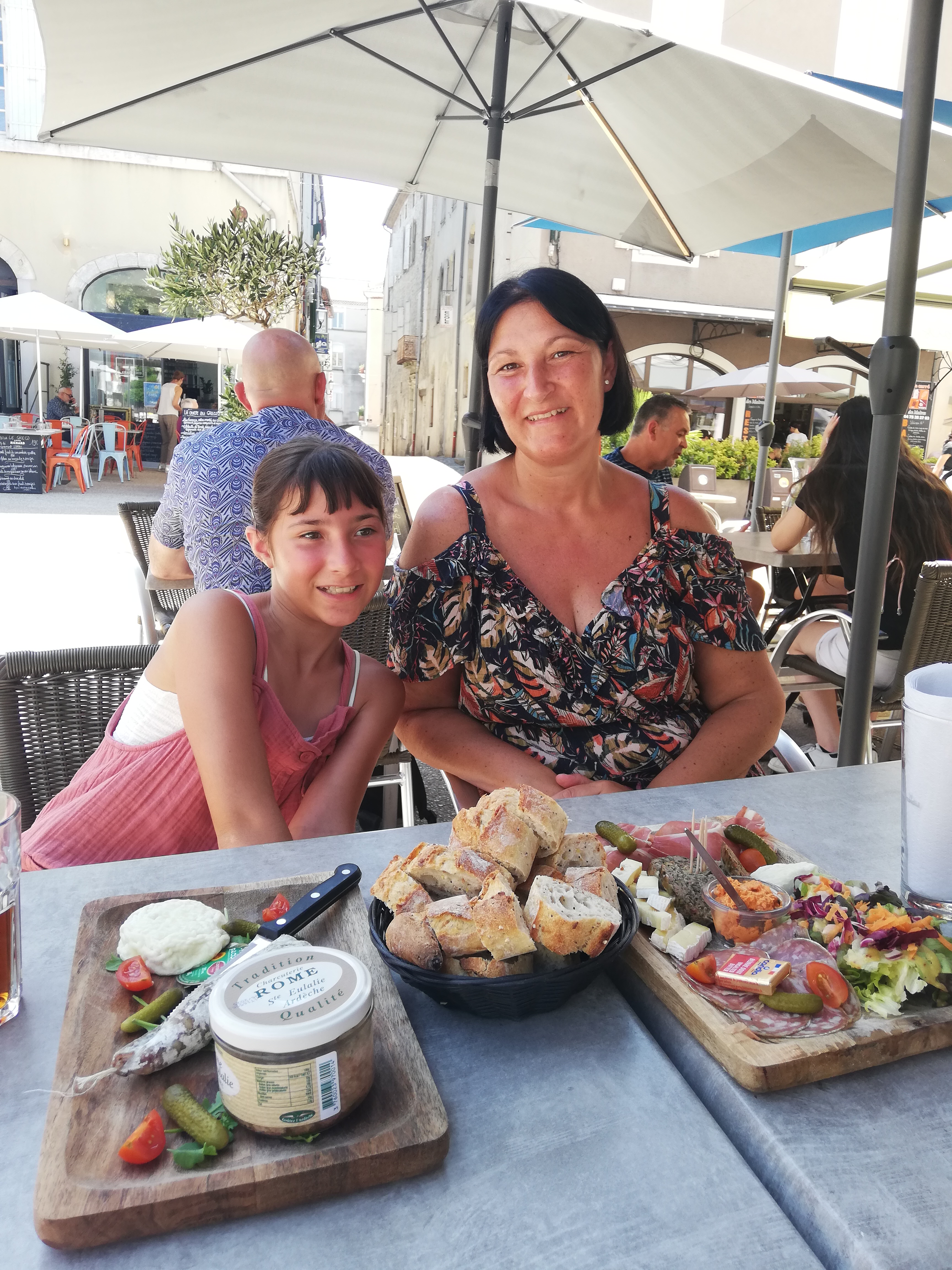 Sympa les planches charcuteries de produits ardechois 👍 Terrasse avec jolie vue sur le château