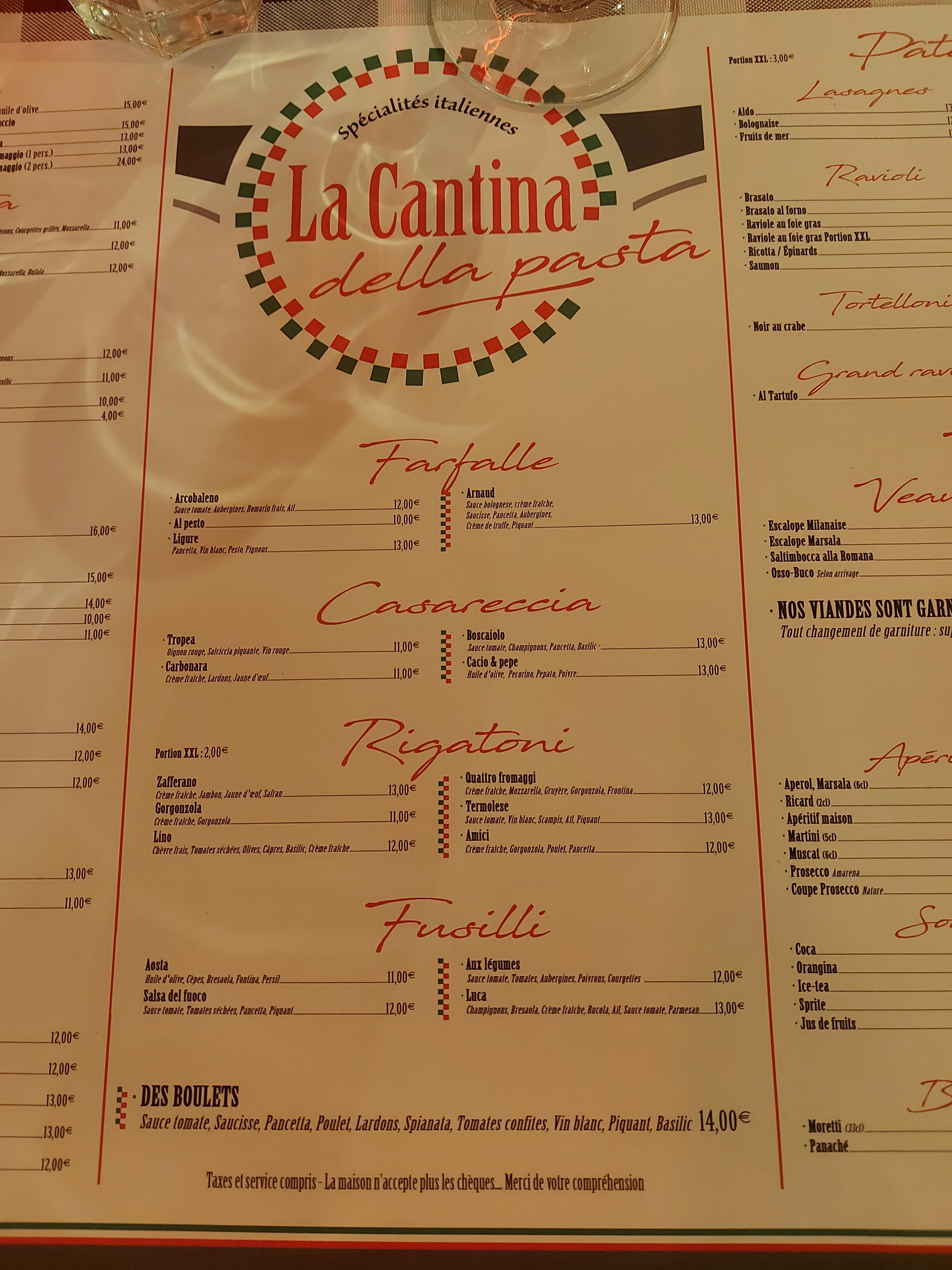 Des pâtes délicieuse, des assiettes copieuse, accueil parfait. Des serveurs très souriants. Une carte ou tout fait envi. A recommander. Il est conseillé de réserver chose que nous n'avions pas faite, mais ils nous ont quand même chercher et trouver une table. A recommander