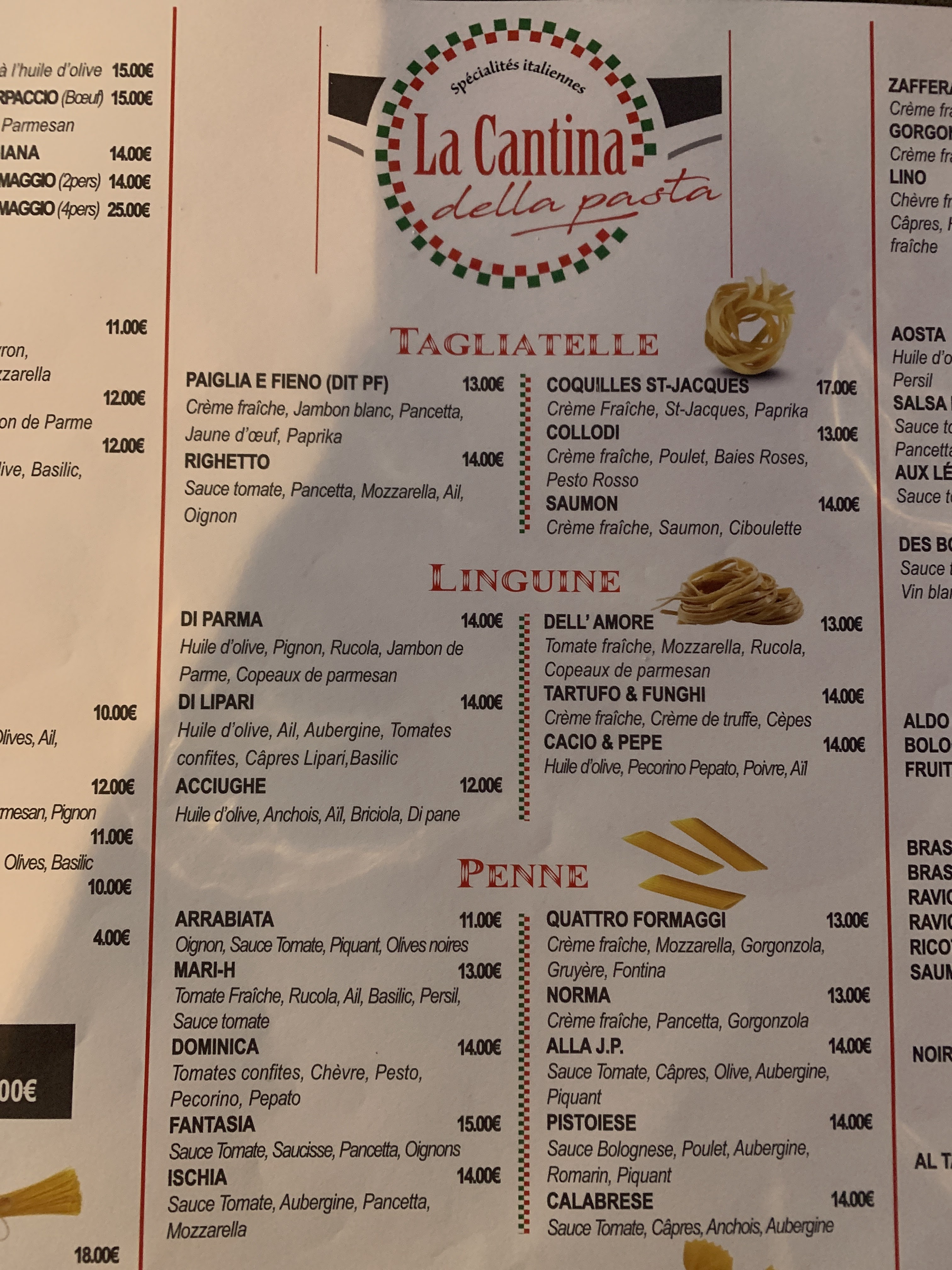 Carte riche et variée cuisson des pates parfaite equipe extrêmement sympathique produit frais #pates de reves apres avoir etait decu chaque soir dans d autres resto honteux à touriste ont termine la semaine par chance sur une bonne note nous avons envie de manger tout la carte et toute la fin de semaine ici !!