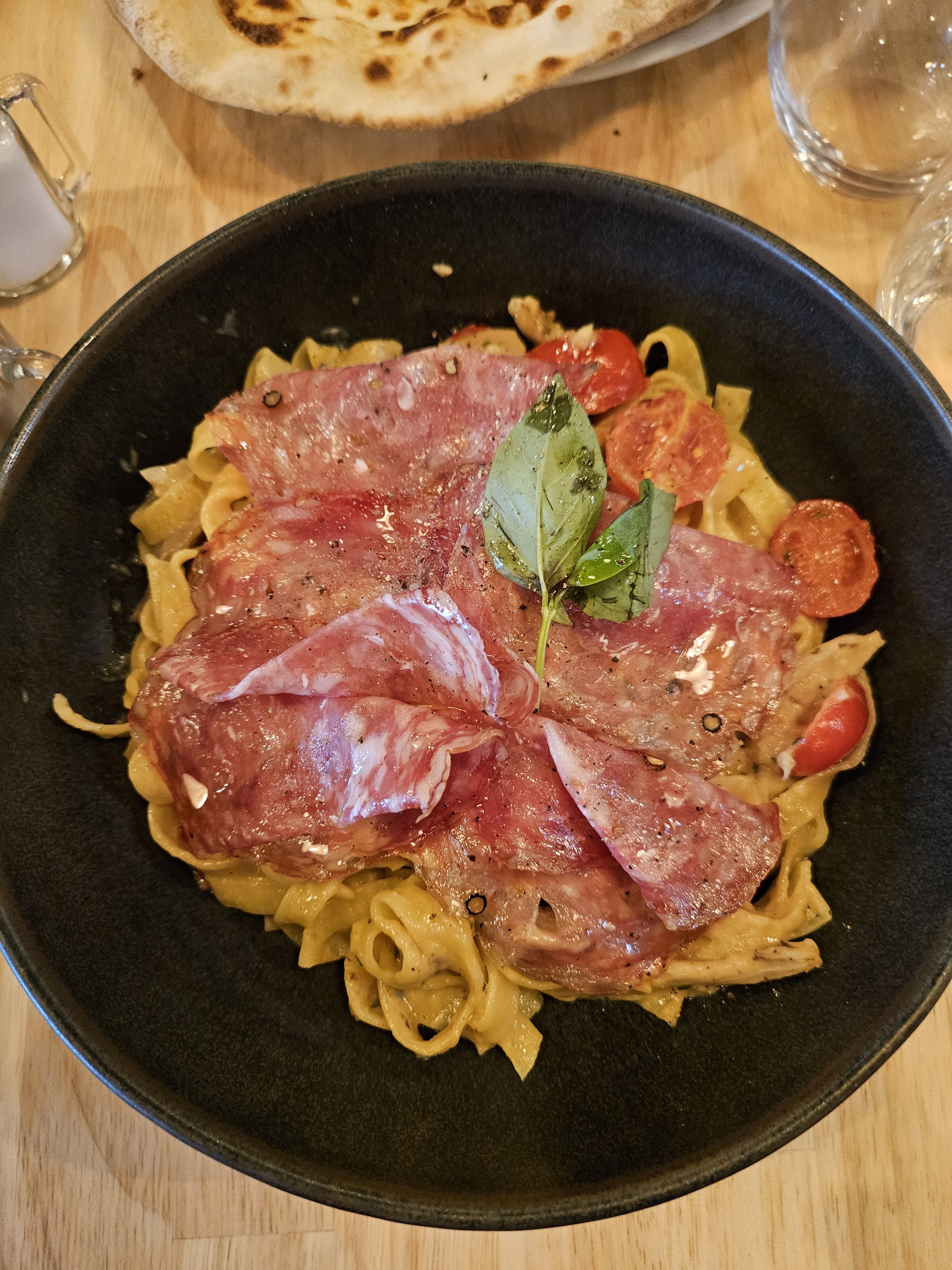 Tagliatelles carbonara bonnes et portion correcte (16€ la portion) . Malgré mon insistance au téléphone lors de la commande, on a cherché le parmesan... Un peu dommage