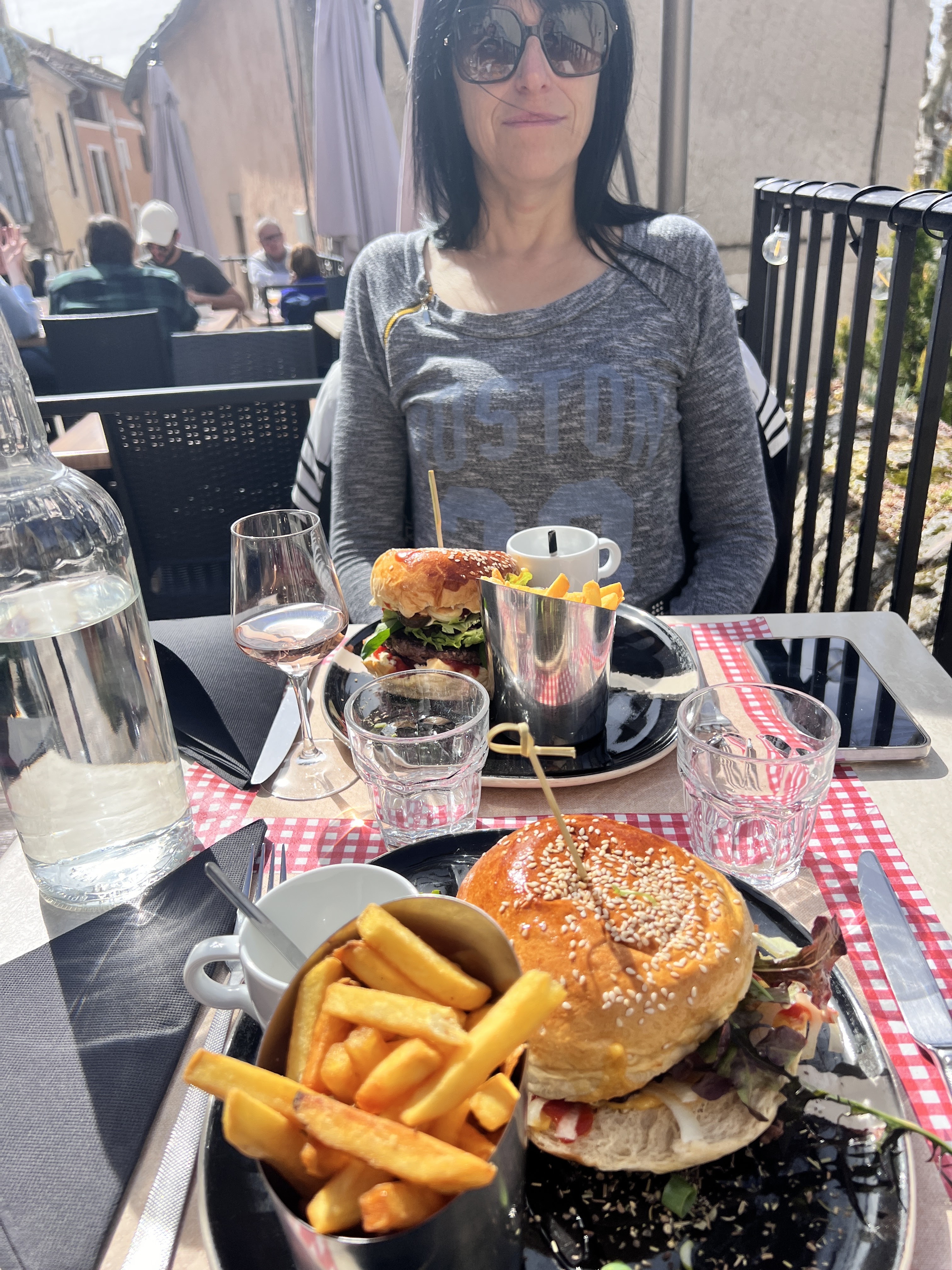 Incroyable burger avec frite fait maison, 17,5€ donne pour la qualité de ce plat. Une bière d'un brasseur du Verdon avec un petit goût de miel et de lavande, plutôt intéressant et un vrai produit du sud qui tranche avec les bières nordiques habituel. Je le recommande, ne perde pas votre temps ni votre argent ailleurs !