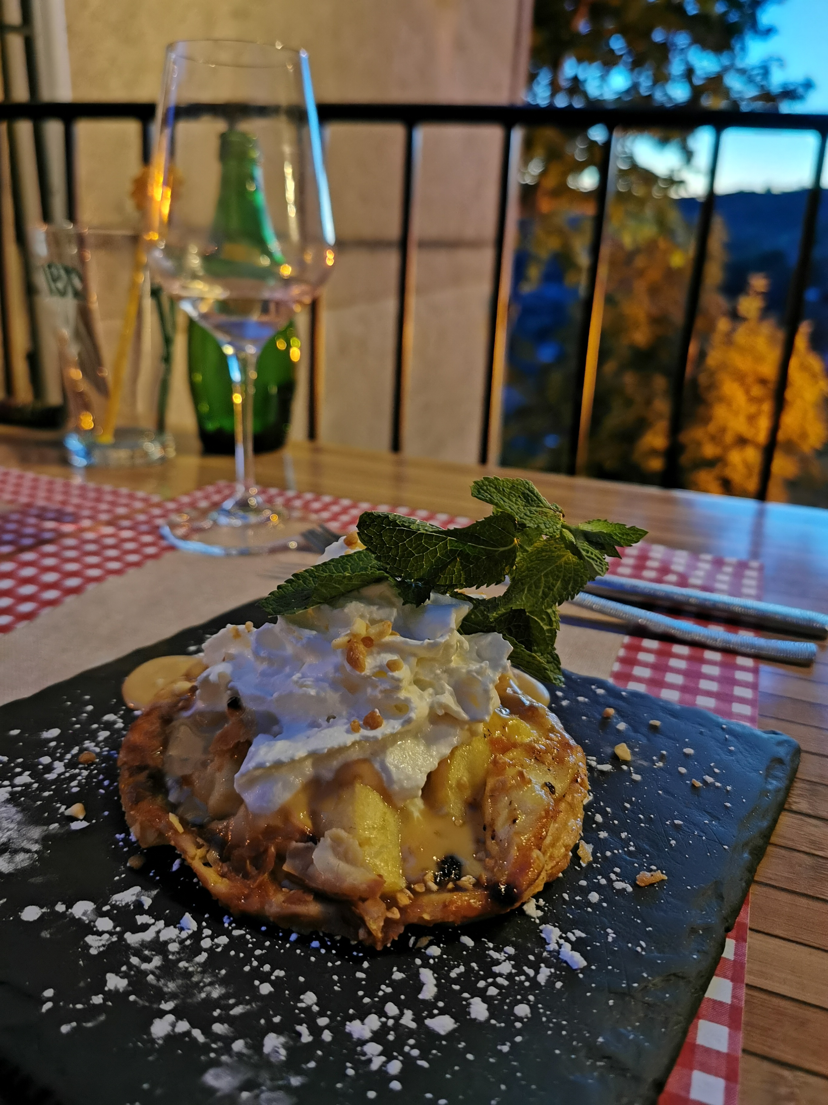 Dîner automnal mais en extérieur car la météo était clémente. Le service et l'accueil étaient top et chaleureux. C'était très appréciable d'avoir des recettes végétariennes très bien travaillées accompagnées de boissons locales. On recommande fortement !