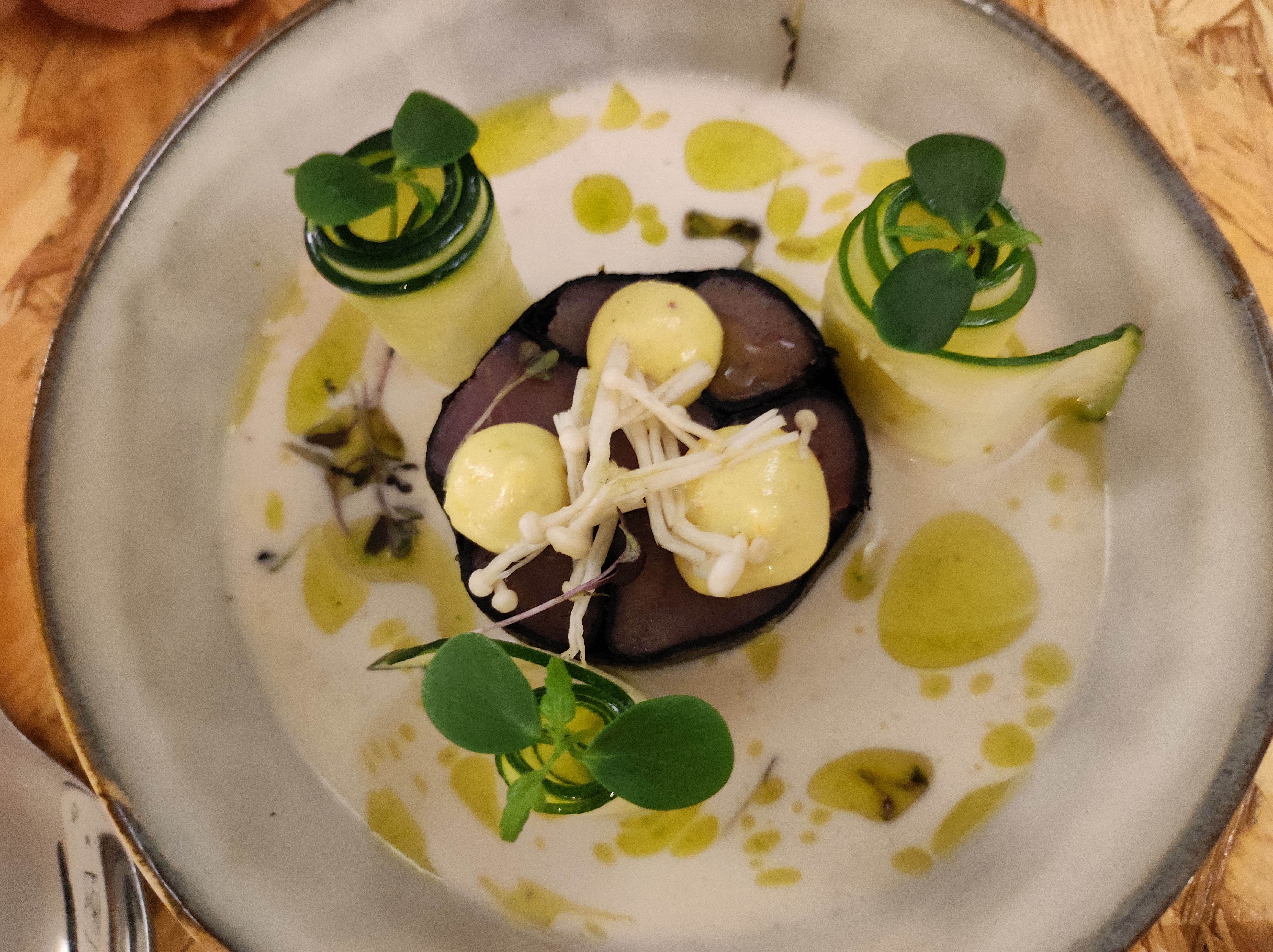 Une soirée repas gastronomique. Un régal. Un régal pour les yeux, des saveurs en bouche et un accueil chaleureux. Le seul bémol est la résonance de l'espace. Merci au cuisinier et au personnel. A refaire