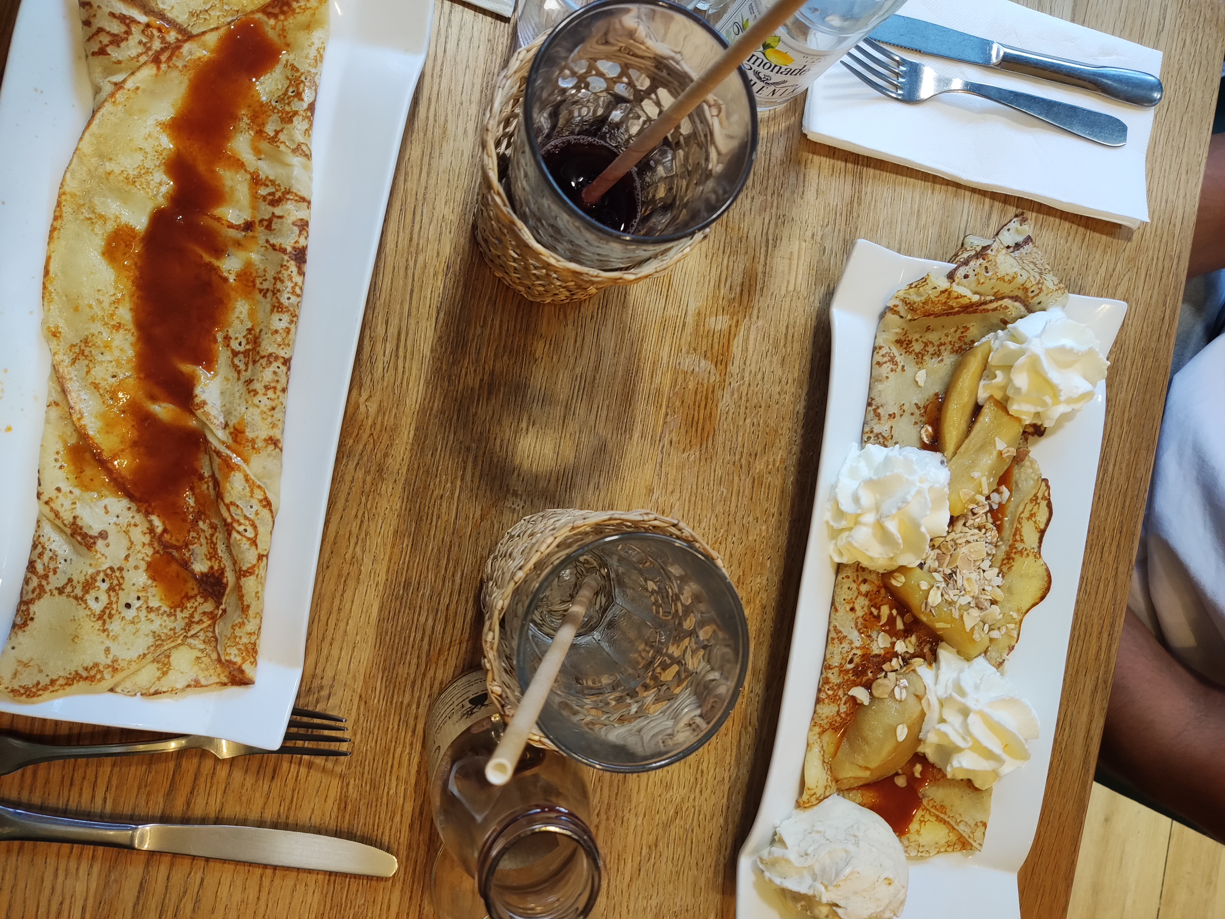 Serveurs agréables, sympathiques, qui sont tous parfumés et propres. Nous avons commandé trois galettes, une au saumon, une raclette et une jambon fromage pour notre fils de 2 ans qui a été très bien accueilli lui aussi par le personnel (nous avons même eu droit à un rehausseur). Les crêpes étaient délicieuses et le thé glacé maison était lui aussi exquis ! Nous y reviendrons avec grand plaisir. Mes salutations à l’équipe de ce restaurant de qualité et de bon goût. P.S. : de nombreux plats vegans, végétariens ou sans glutens sont disponibles !