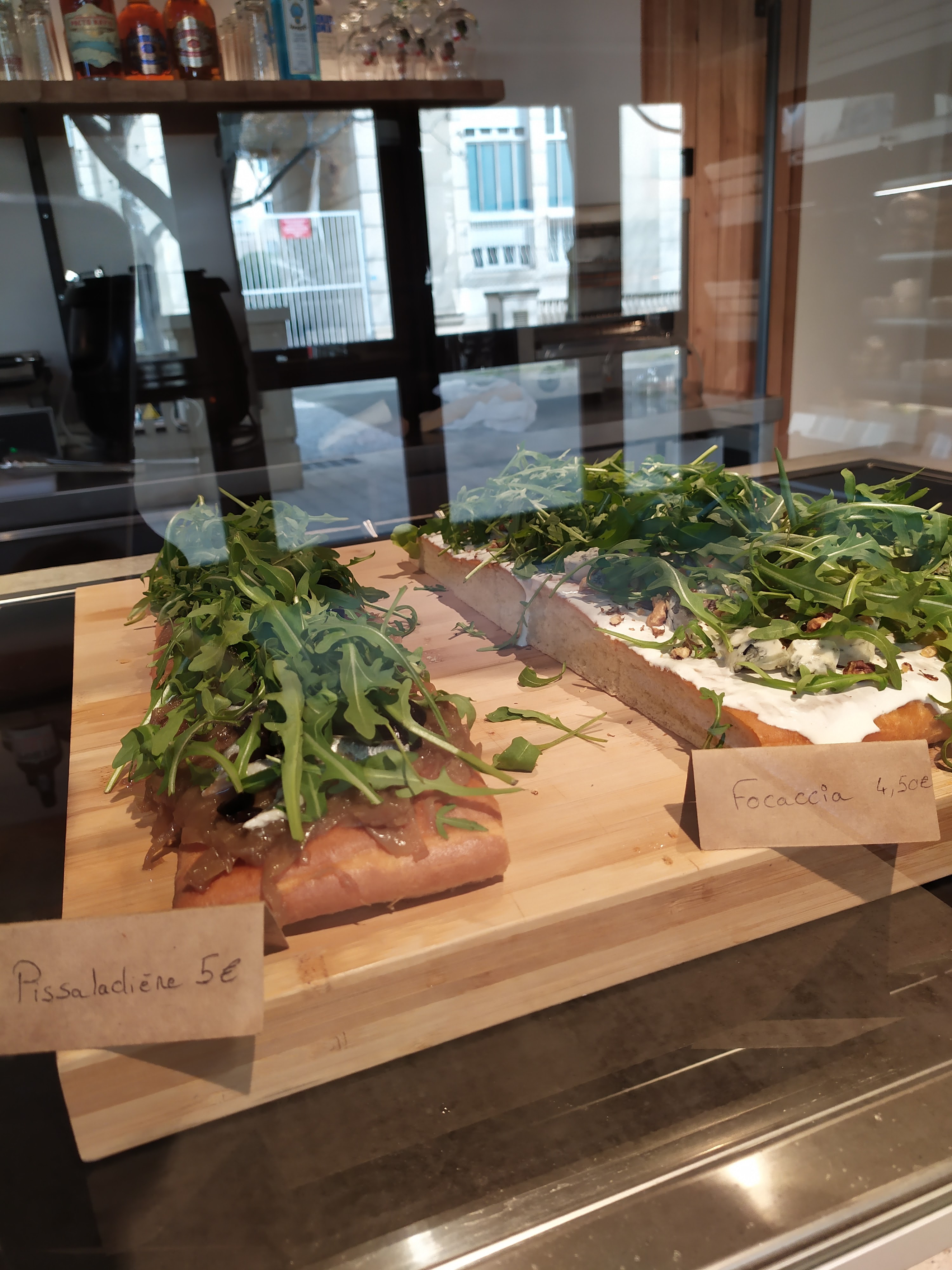 Je sors un peu du centre ville (Station Léon Blum - T1) pour une pause déjeuner dans ce joli lieu à l'ambiance épurée, plutôt calme avec un bon petit son lounge comme j'aime. Lieu de petit déjeuner (jusqu'à 11h), déjeuner, (cantine urbaine), goûter, happy hour et va falloir que je teste les tapas le soir 😁 Et également de coworking 👌 Bon je commence par un petit cappuccino au lait de soja, et ensuite... J'ai déjà repéré qu'il y a un plat végétarien 👌 Sandwich et foccacias chaud ou froid ? Salades... Petite place pour le dessert ? Finalement j'ai opté pour un sandwich toasté chèvre et aubergines et un houmous et feta juste citronné à souhait. Et pour le dessert, un brownie aux noix de pécan 🤤🤤🤤 Bon bah vous savez quoi ? J'ai aussi mon dîner de ce soir car je n'ai pas pu tout manger 😅😅😅 De vraies belles portions et en plus préparées chaque jour (Merci au cuistot pour la petite discussion 👌) Et super plan La fourchette, j'ai payé moitié prix cappuccino compris 👌👌 Et même sans cela, j'y reviendrais quand je pourrais (début de semaine plats végétariens, et j'ai vu l'assiette bien garnie du plat du jour 👌😋) car bien manger pour 15,80 euros ya pas photo 😉