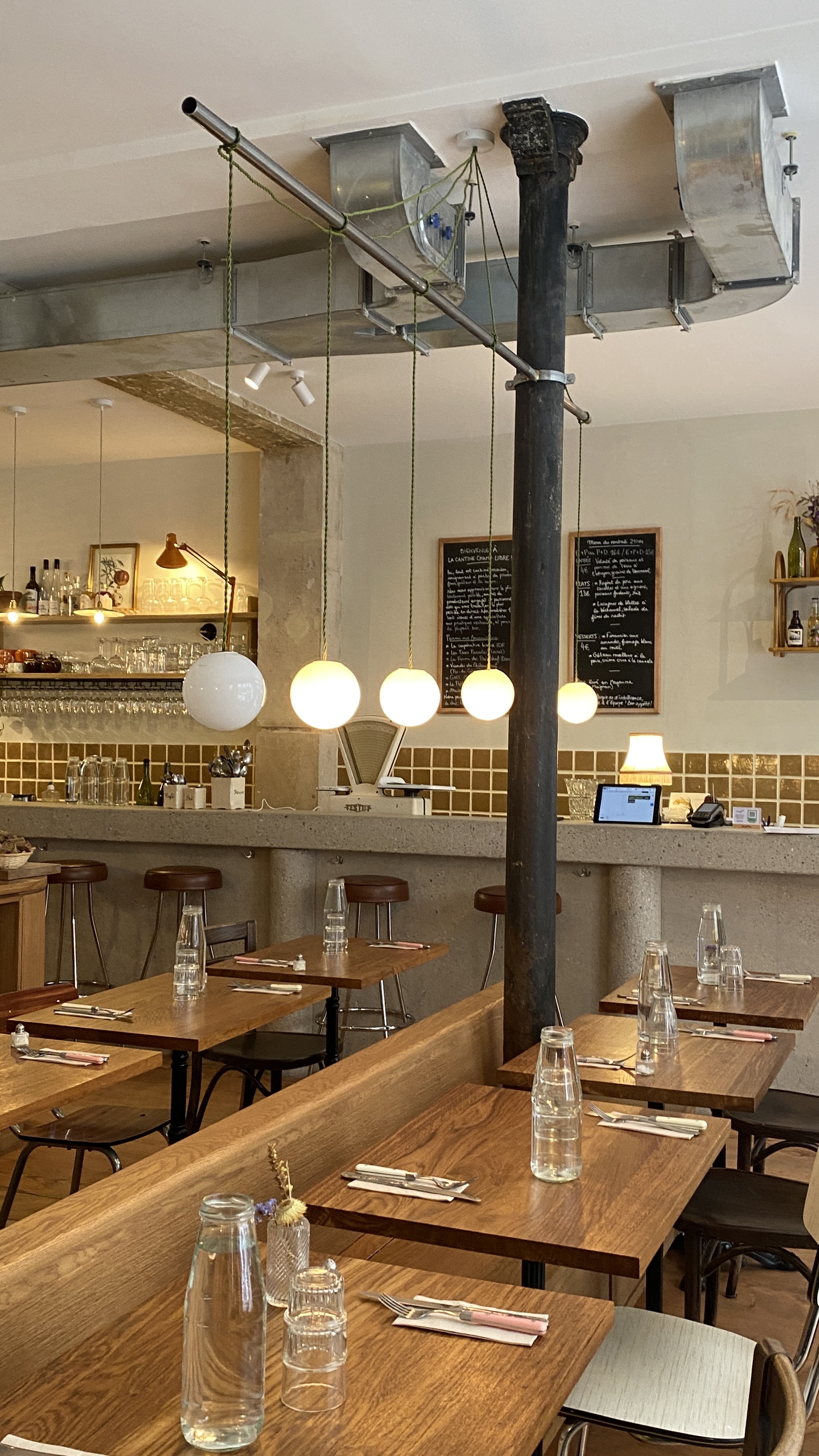 Ambiance cantine réussie : salle conviviale et animée, assiettes simples, savoureuses et digestes! Mention spéciale pour le beau bar en béton.