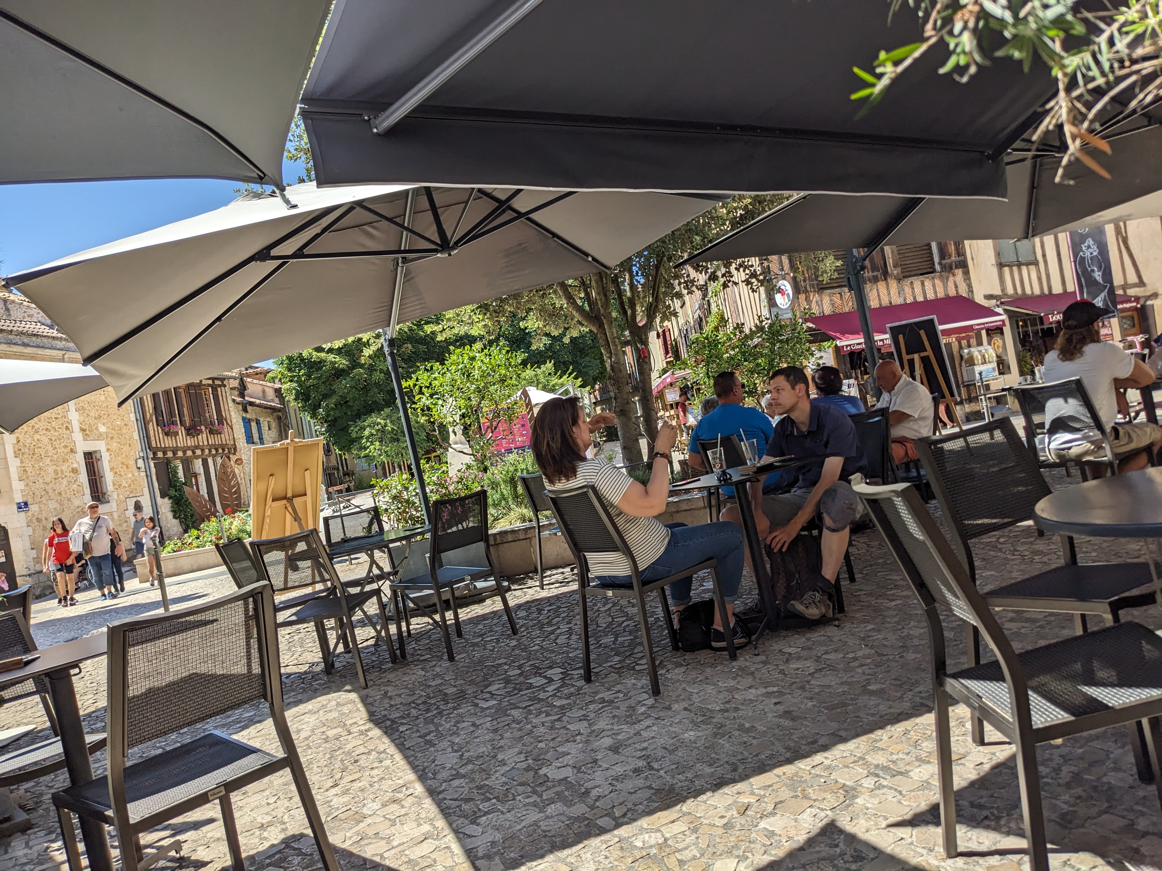 Pose café très agréable en terrasse. Service de qualité avec serveurs sympas! Petit clin d'œil à la patronne qui m'a guidé avec générosité vers une boutique de spiritueux suite à ma recherche d'un très bon rhum! Encore merci!