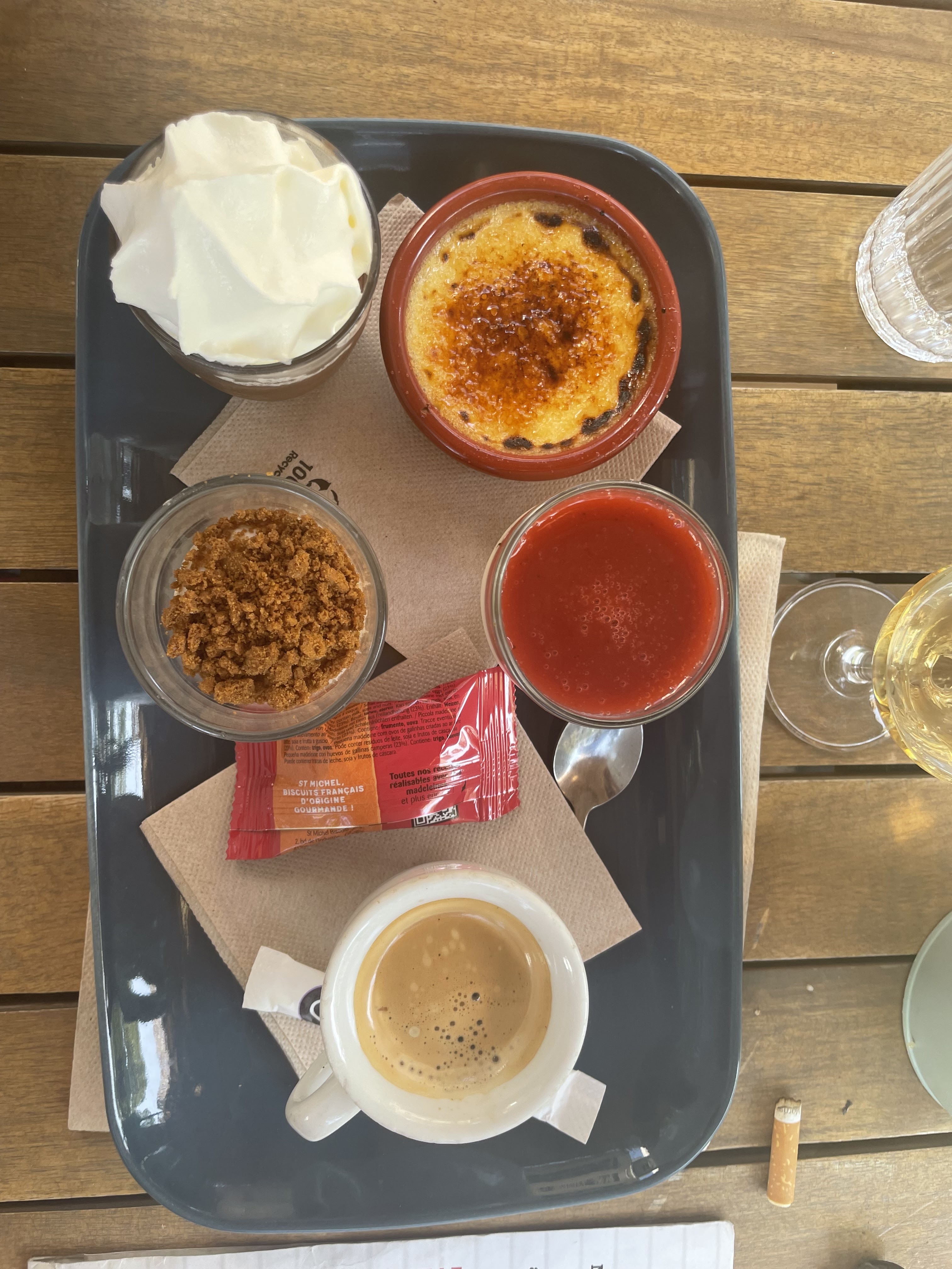 De la moisissure dans la crème brûlée. Je le fais gentiment et discrètement remarqué à la serveuse qui men apporte une autre. Nous n y avons évidemment pas touché. Aucun geste commercial pour compenser ça. Je ne reviendrai pas.