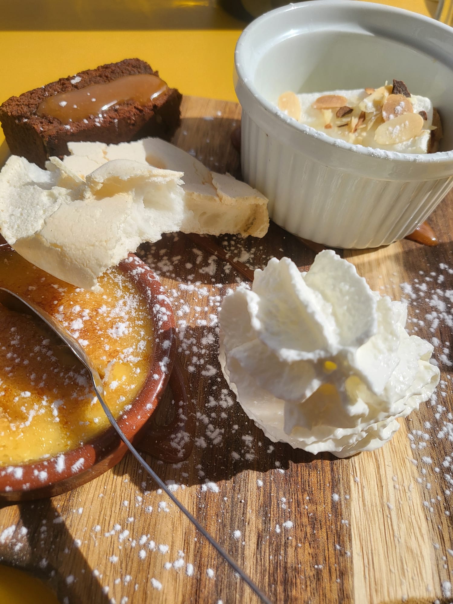 Mon expérience était délicieuse. Le menu était très original car s'était un vieux livre très intéressant la serveuse (Juliette) était très gentille, attentive et même drôle. Le style était plutot cozy trés accueillent en plus vous pouvez allez dehors. Sur les plats rien a dire juste délicieux et fait maison. Pendant les week-ends il y a un petit plus dans le menu. Il y a aussi un petit bar. J'ai juste adorée. Ps:il y a l'embarras du choix pour la glace.