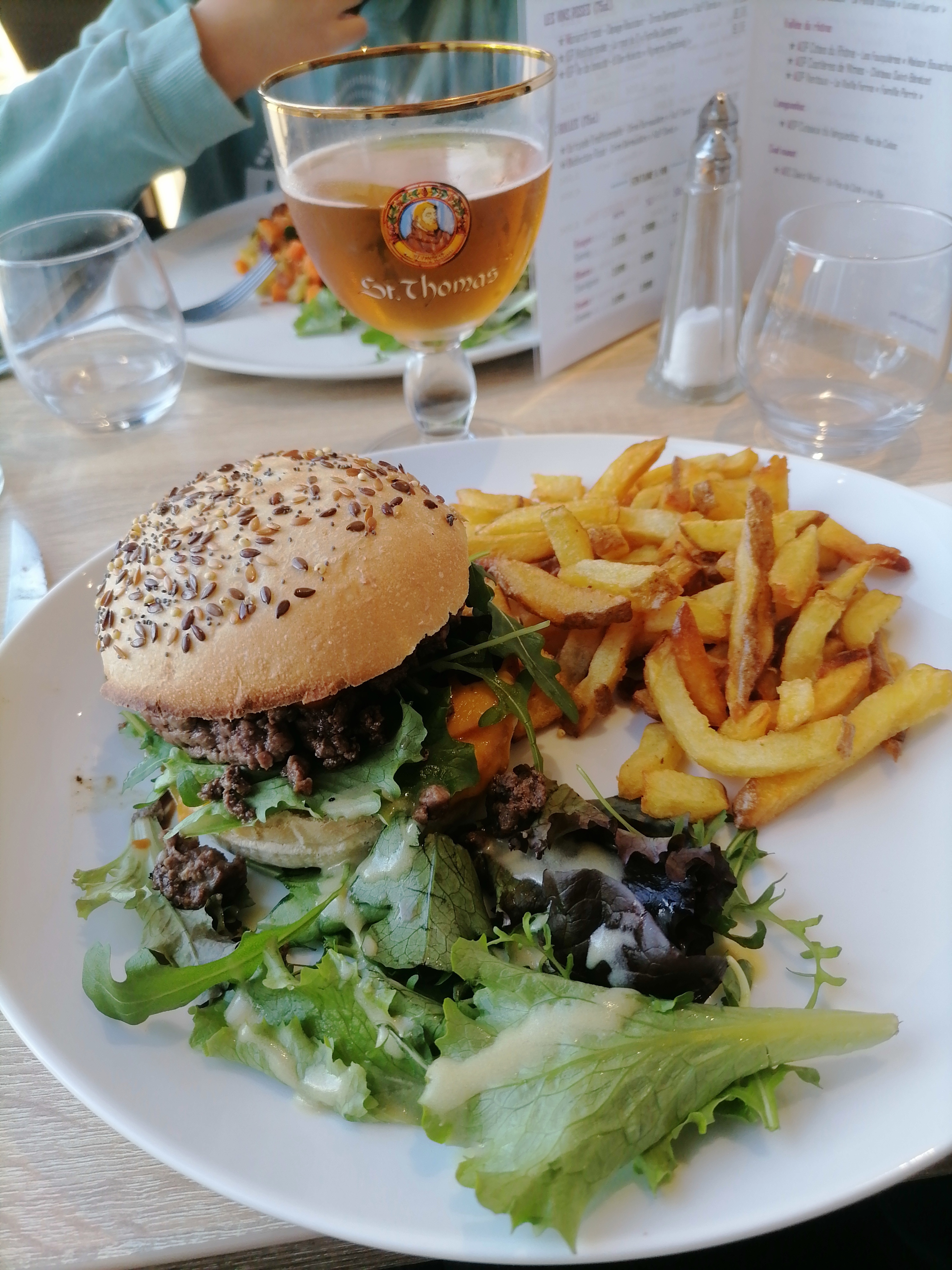 Super restaurant !! J'ai pris une formule du midi avec un crémeux asperge délicieux, un burger frites 😋 et un petit crumble aux pommes en dessert. Rapport qualité prix au top et tout est fait maison, un vrai délice. Mon fils a pris une pizza, elle était délicieuse également. Petit plus, des serveuses souriantes et efficaces et une belle présentation des assiettes. À recommander +++