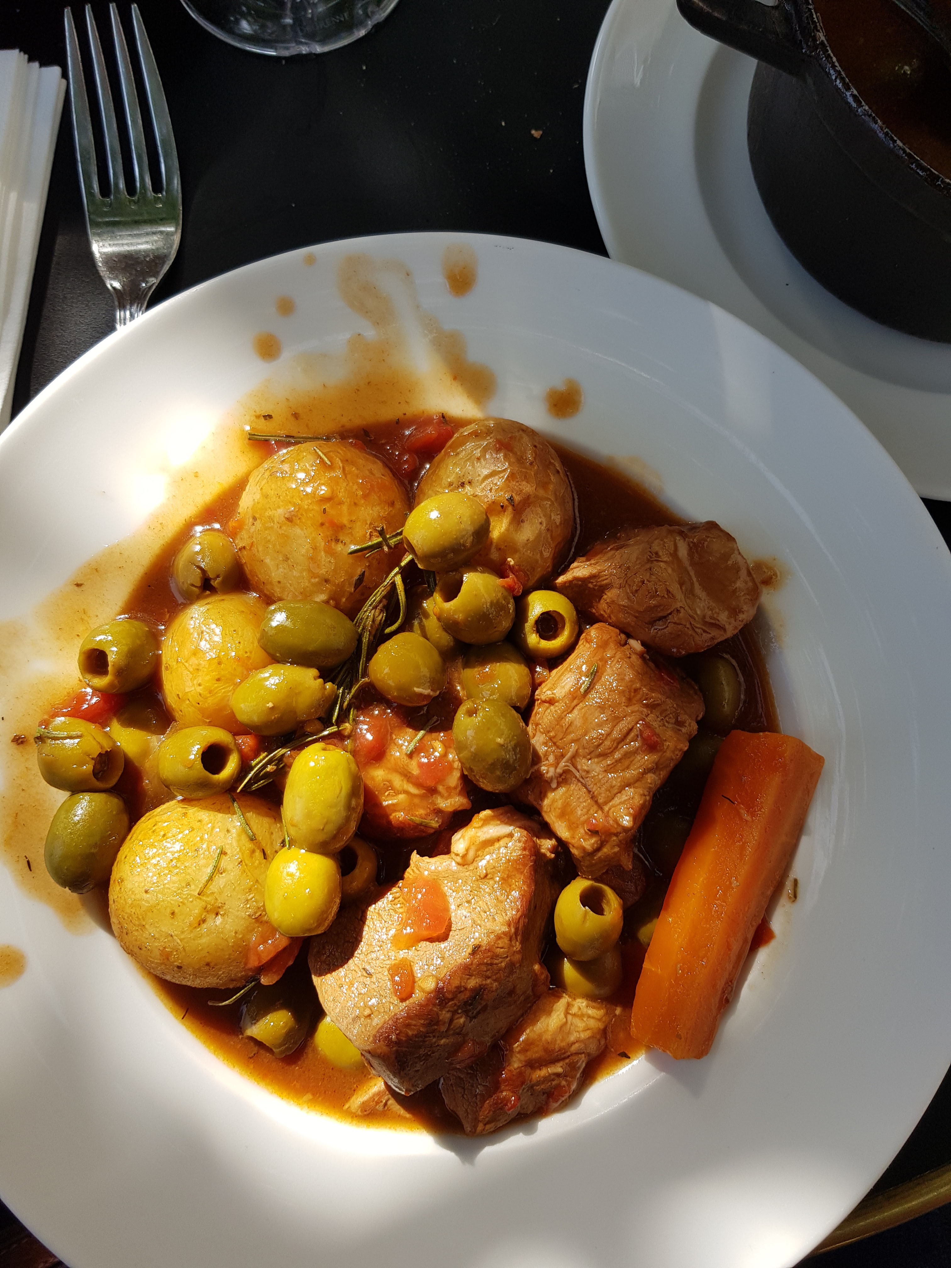 On s'y régale. Par une magnifique journée de début d'automne, permettant de déjeuner en terrasse, j' ai dégusté un magnifique sauté de veau servi dans une cocotte, agrémenté généreusement d'olives. Pleine vue sur le château de Saint Germain. Un léger bémol sur la proximité de la route passant devant le château mais vite oubliée quand les saveurs ont fini d'envahir mon esprit. Le parc de château, à 2 pas, permet une digestion sereine.