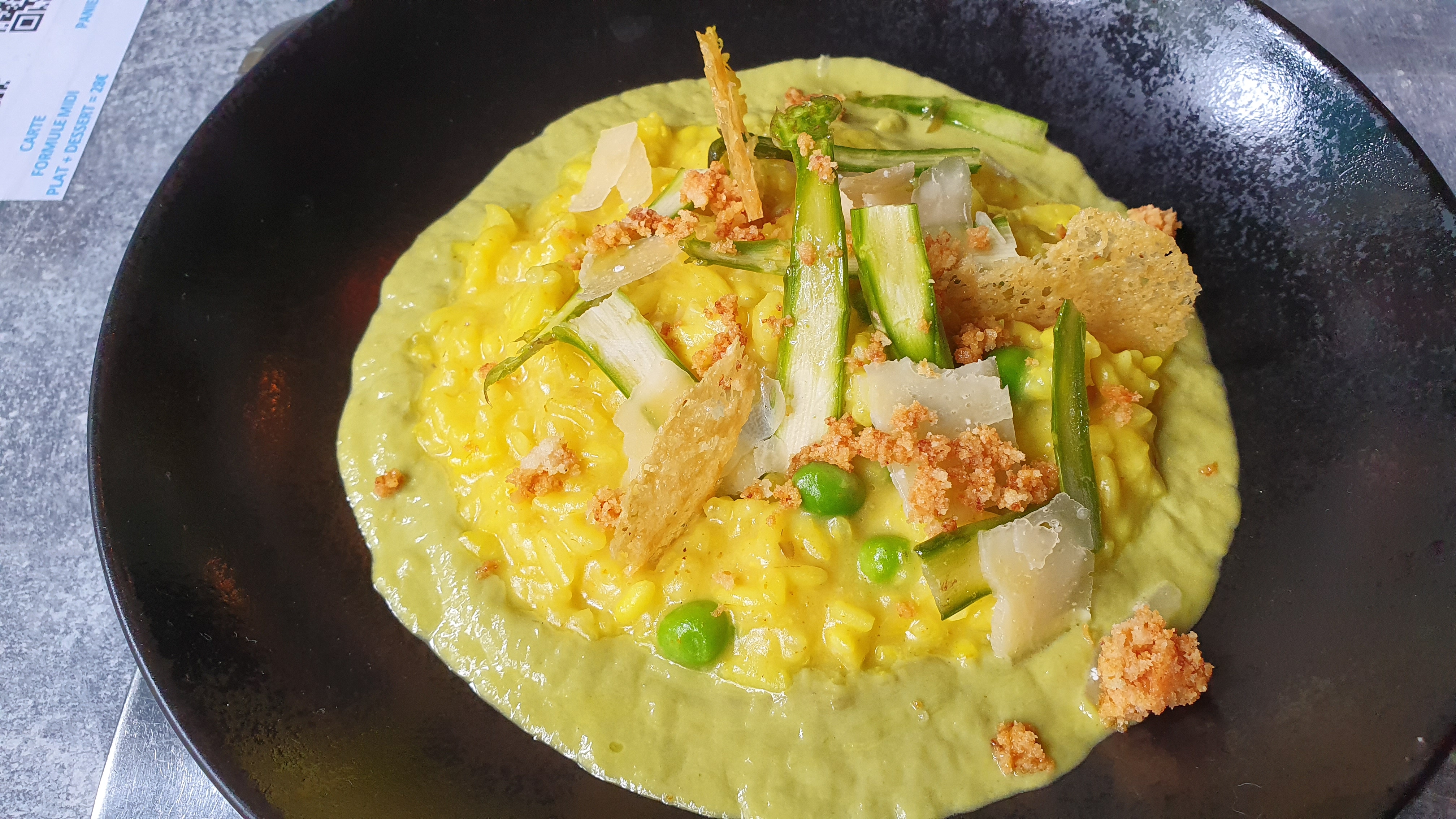Excellente adresse. Risotto & le Sot - l’y - laisse de volaille, un délice. Avec en dessert une poire pochée au sirop et son espuma de chocolat noir. La tartinade au fenouilles en entrée, je ne recommande pas mais plus par gout personnel que pour la qualité du produit. (D’autres saveurs sont à dispo)