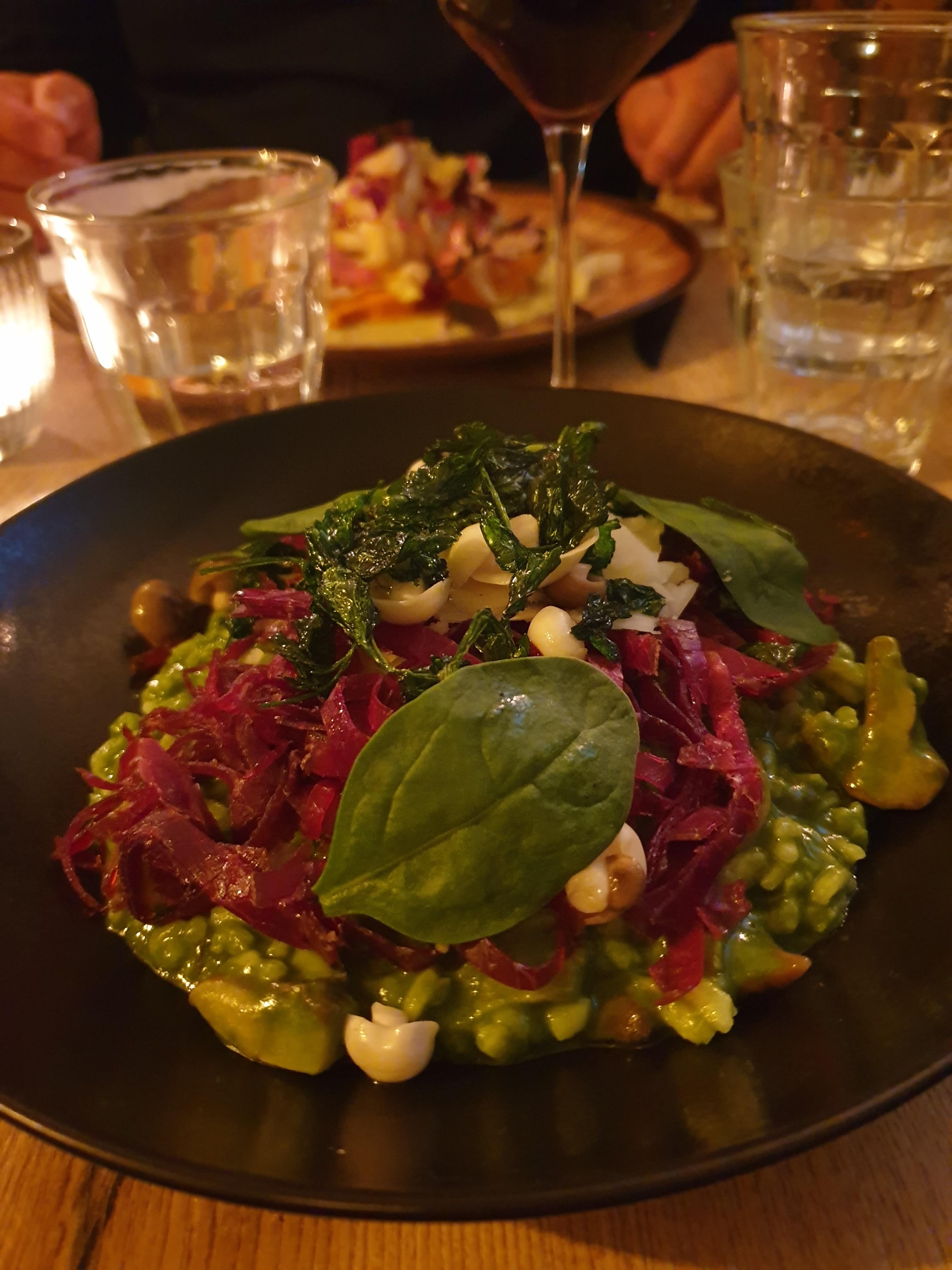 Les deux serveurs qui nous ont servies étaient très agréables et chaleureux. Le risotto étaient excellent, plein de saveurs et surprenant, tout comme le dessert. Un vrai régal ! Tout est finement présenté et notre vue aussi bien que notre palais en sont comblés ! Une très bonne adresse pour un repas avec des amis ou en couple.