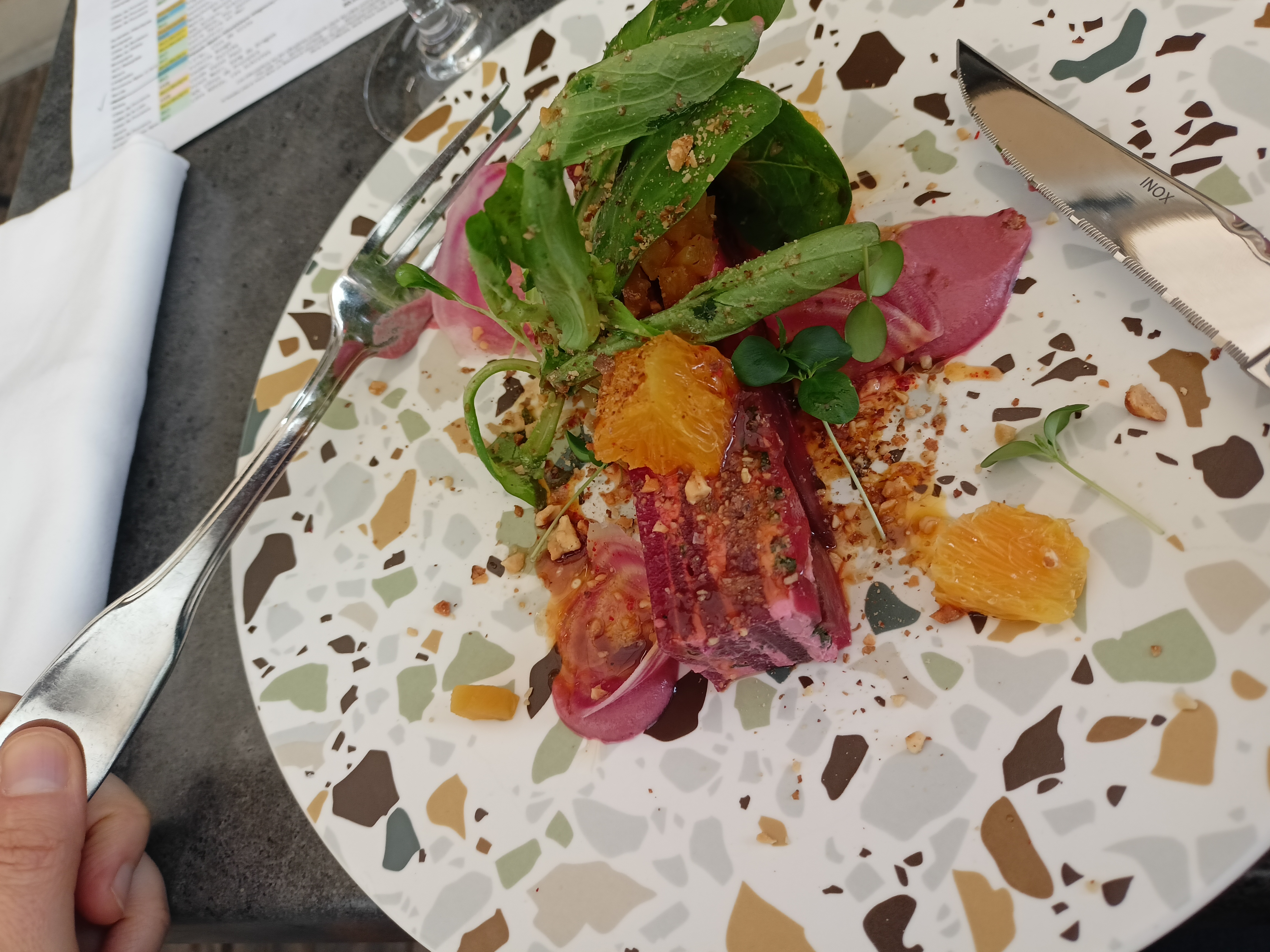 Super découverte ! , cadre élégant sans chichi , service et nourriture exellent! Produits travaillés , je me suis régalée ! Entrée,plat, dessert ! Je recommande