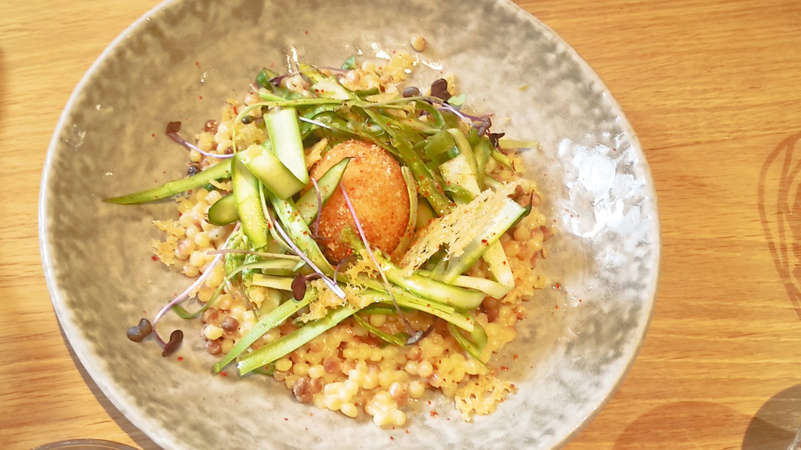 Magnifique! parfaitement accompagné par l equipe du restaurant dans un cadre élégant, la cuisine est de saison, la carte courte offre un vrai choix. Ce soir nous avons été conquis par un extraordinaire velouté d asperges twisté par ce qu il faut de croquant. Il faut y retourner absolument pour tester la nouvelle carte qui change tous les 15 jours.