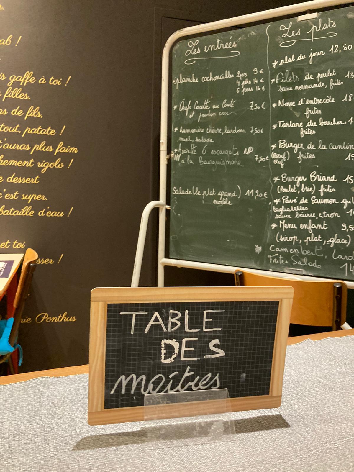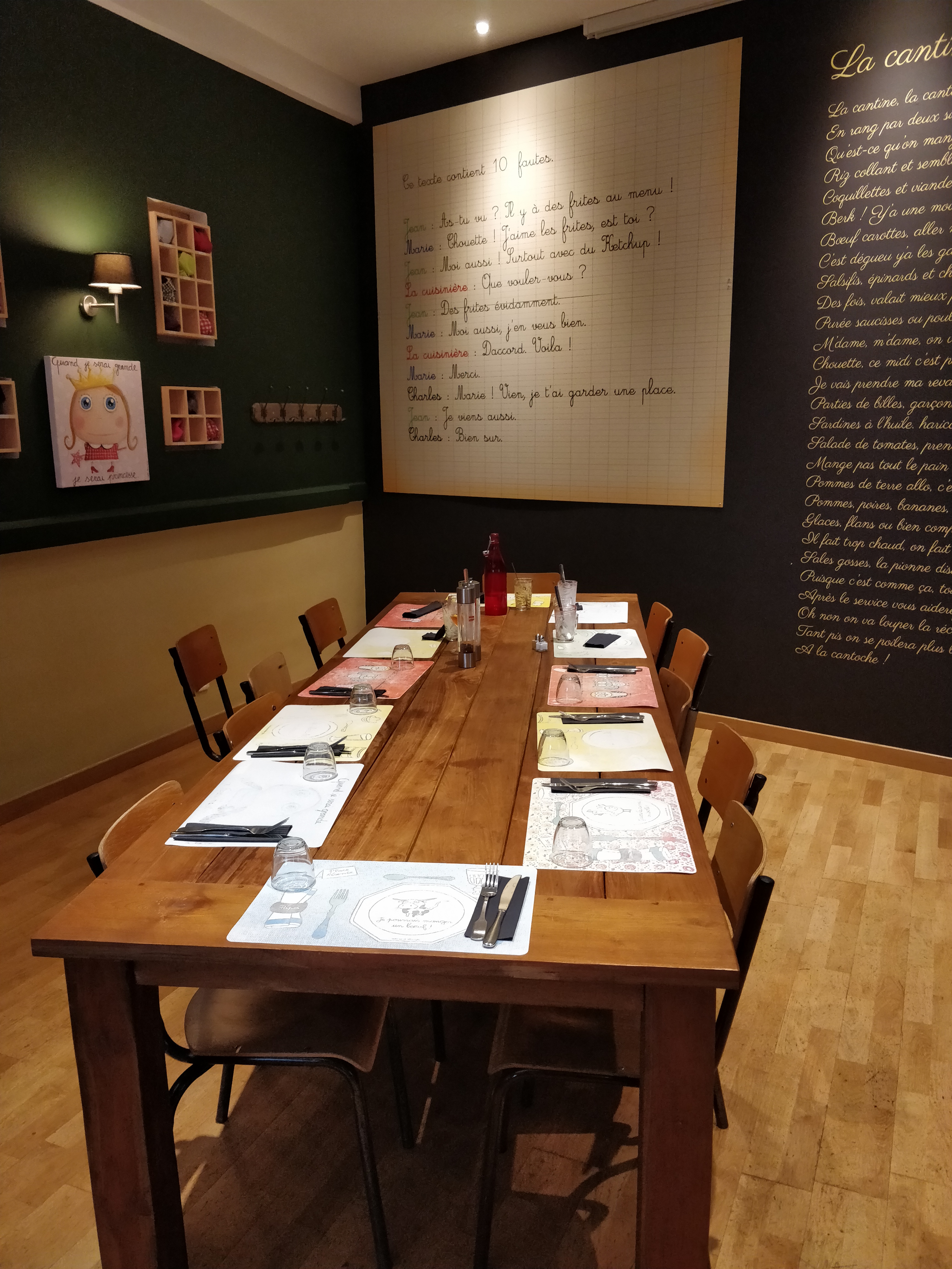 Ambiance classe d'école réussie et les plats en clin d'oeil à l'enfance. Très sympa !