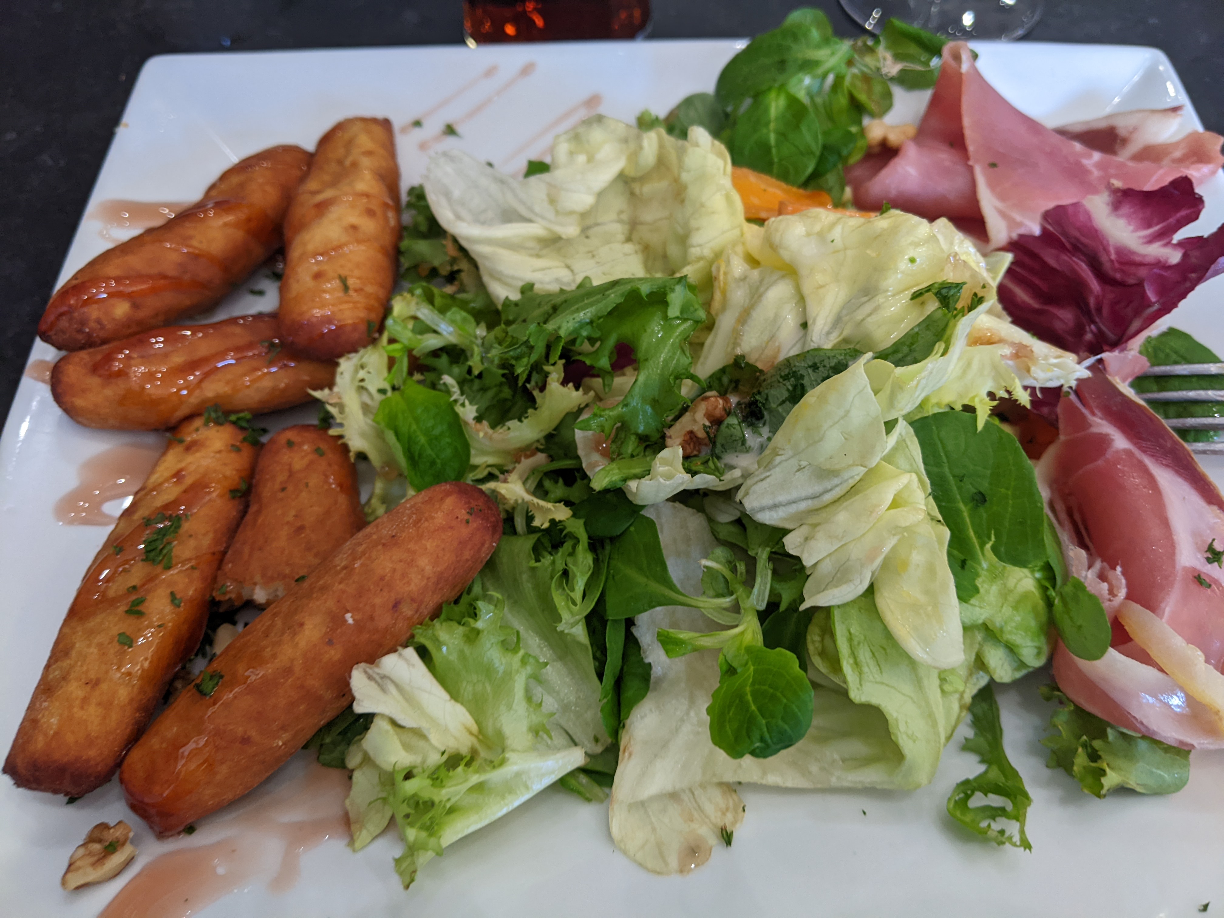 Agréablement surprise par la salade du champsaur. Une tuerie 😉 avec sa petite sauce aigre douce maison. En dessert une excellente tarte tatin. Cadre et Service impeccable. On reviendra j'espère si l'occasion le permet.