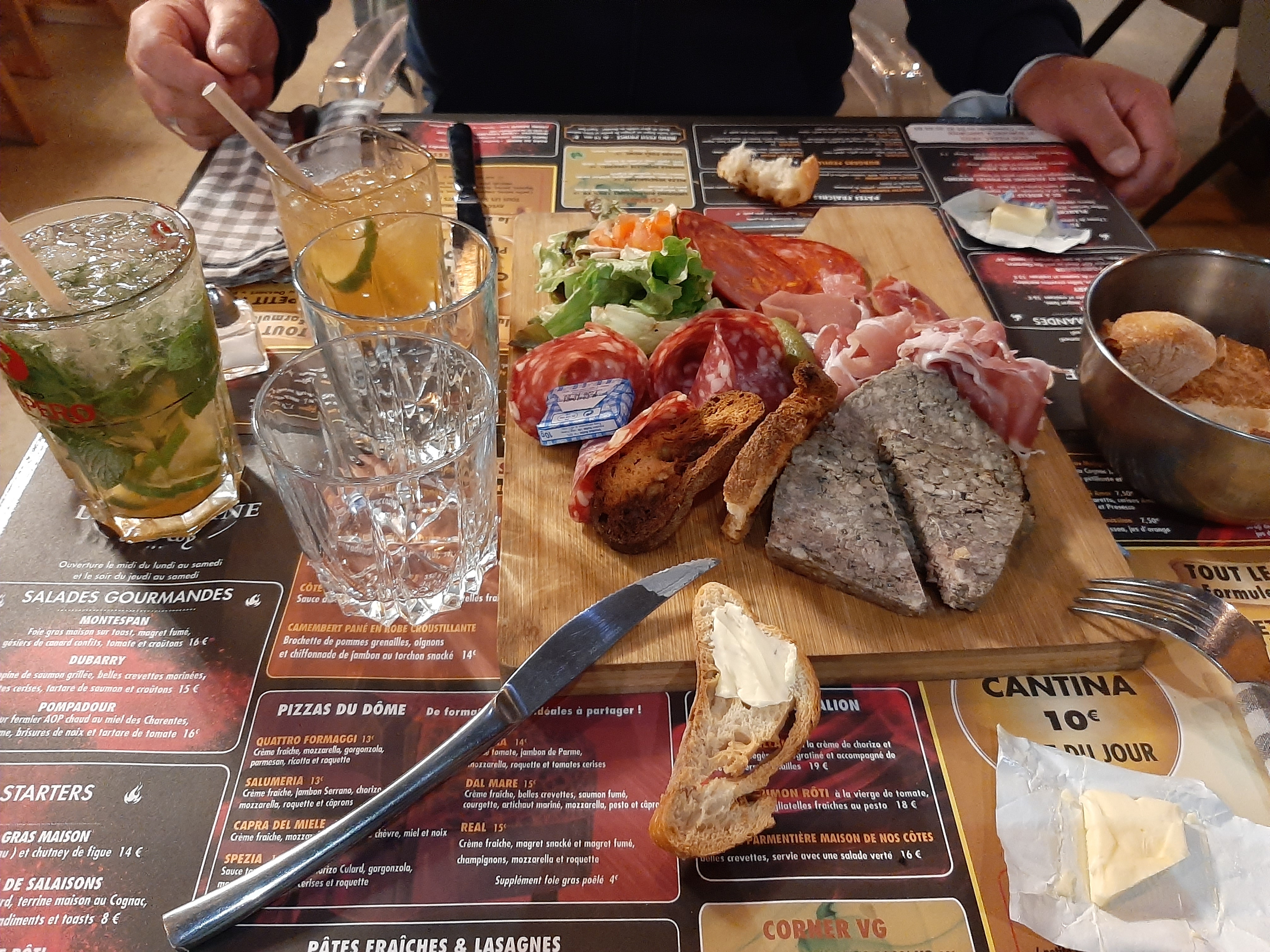 Mojito à l'eau, peu de choix sur la carte,l'intitulé du tableau n'est pas respecté dans l'assiette. Bref pas génial
