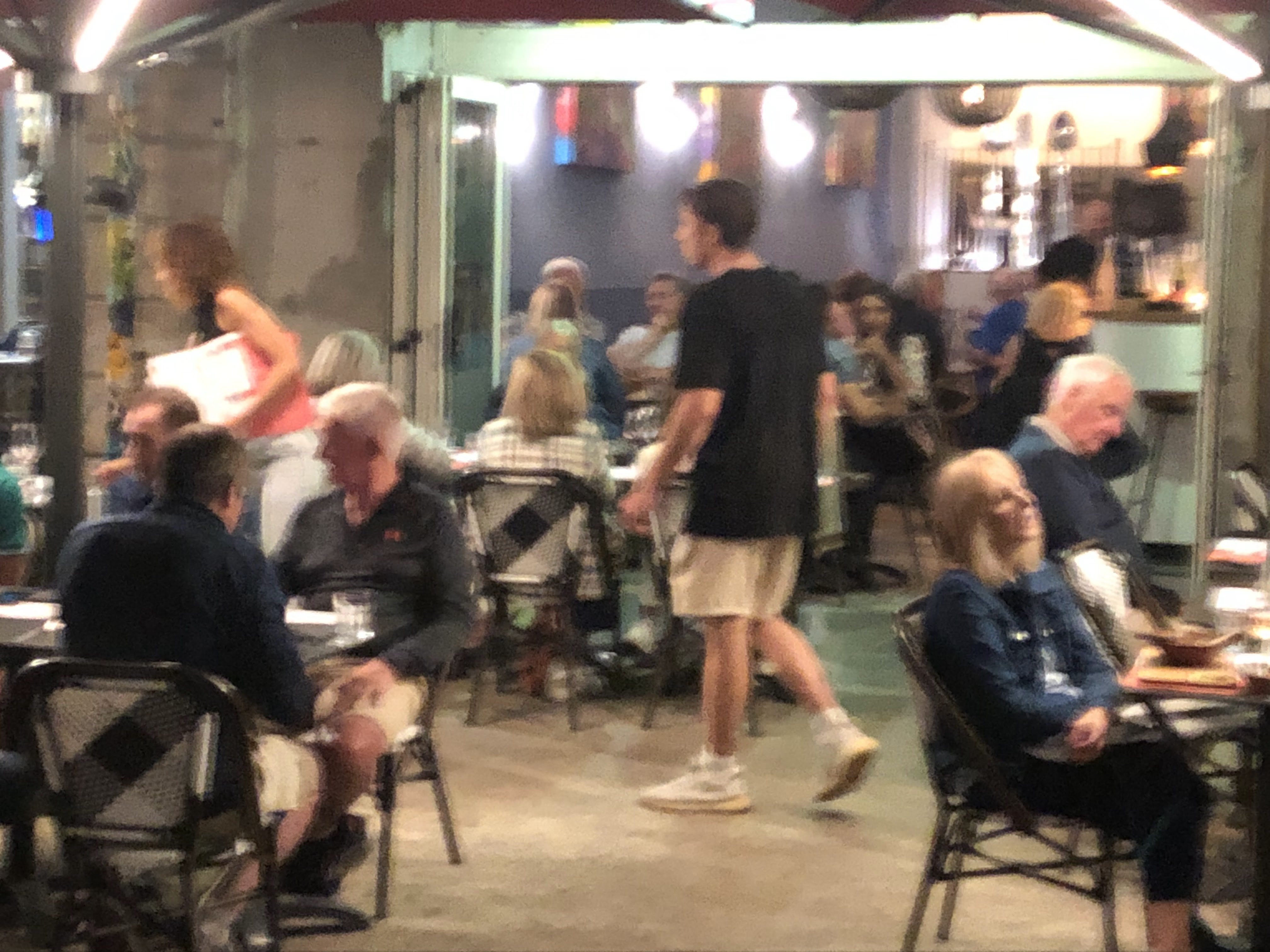 Nous sommes arrivés tard en ville (21h45) pour constater que les restaurants à proximité de notre appartement étaient fermés ou en train de fermer. C'était le seul endroit, malgré l'heure, disposé à nous servir à manger. Le serveur était très accueillant et nous a assis tous les quatre. Le service était excellent, aucun problème, notre français était très médiocre, les menus étaient disponibles en anglais. La nourriture était vraiment excellente. Un canard, saumon, jarret d'agneau et burger italien. Le serveur a choisi notre vin, un charmant Chardonnay. Nous avons été les derniers à quitter mes au moins 60 minutes, mais nous n'avons subi aucune pression. L'endroit était propre et détendu.