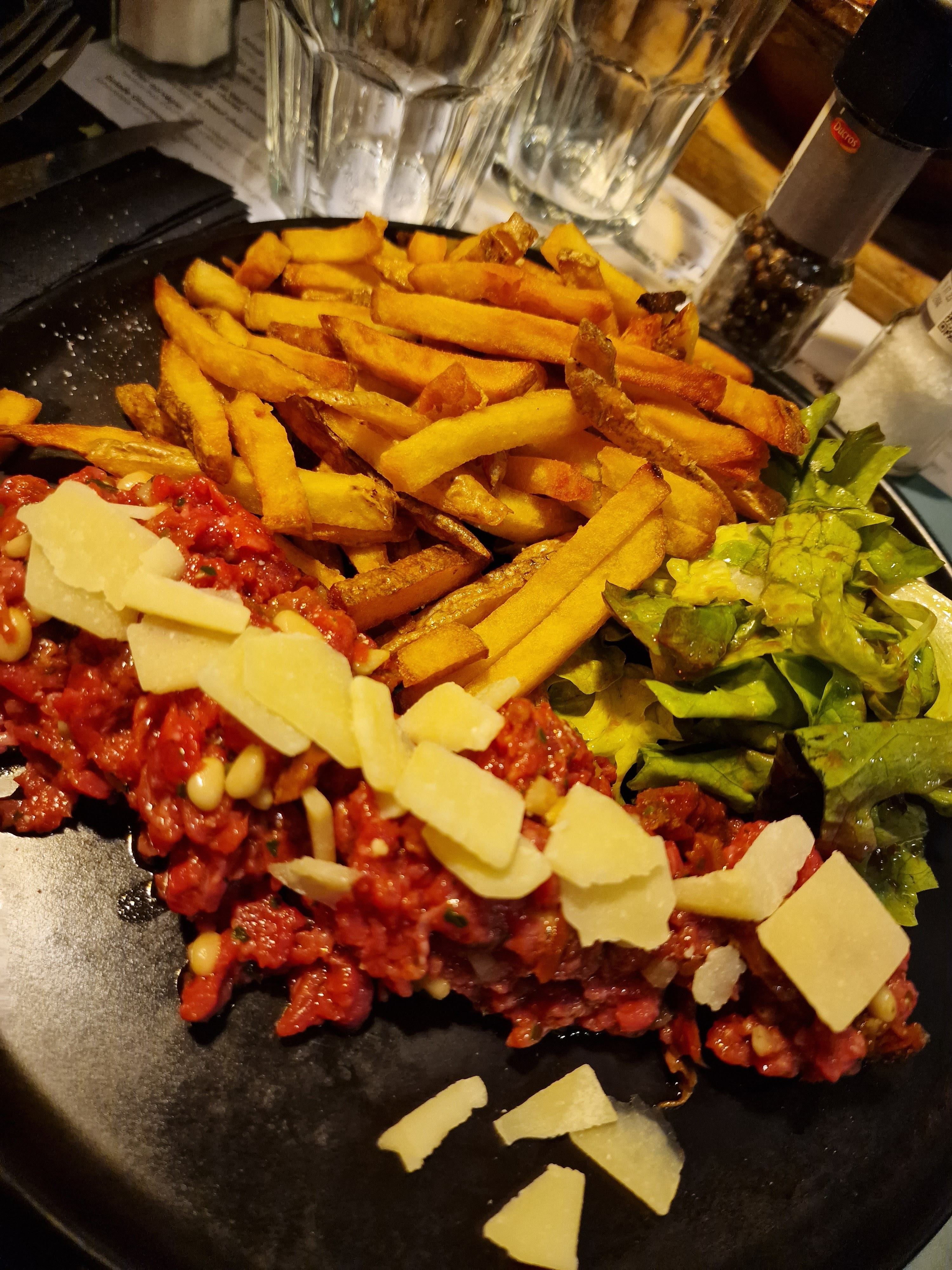 Hormis un service lent et médiocre (ils ont oublié l'eau, les couverts, complètement oublié d'apporter les entrées), comment expliquez-vous que j'aie trouvé une écaille de poisson à l'intérieur de mon tartare de bœuf ? Attends, je ne veux pas savoir. Éviter!