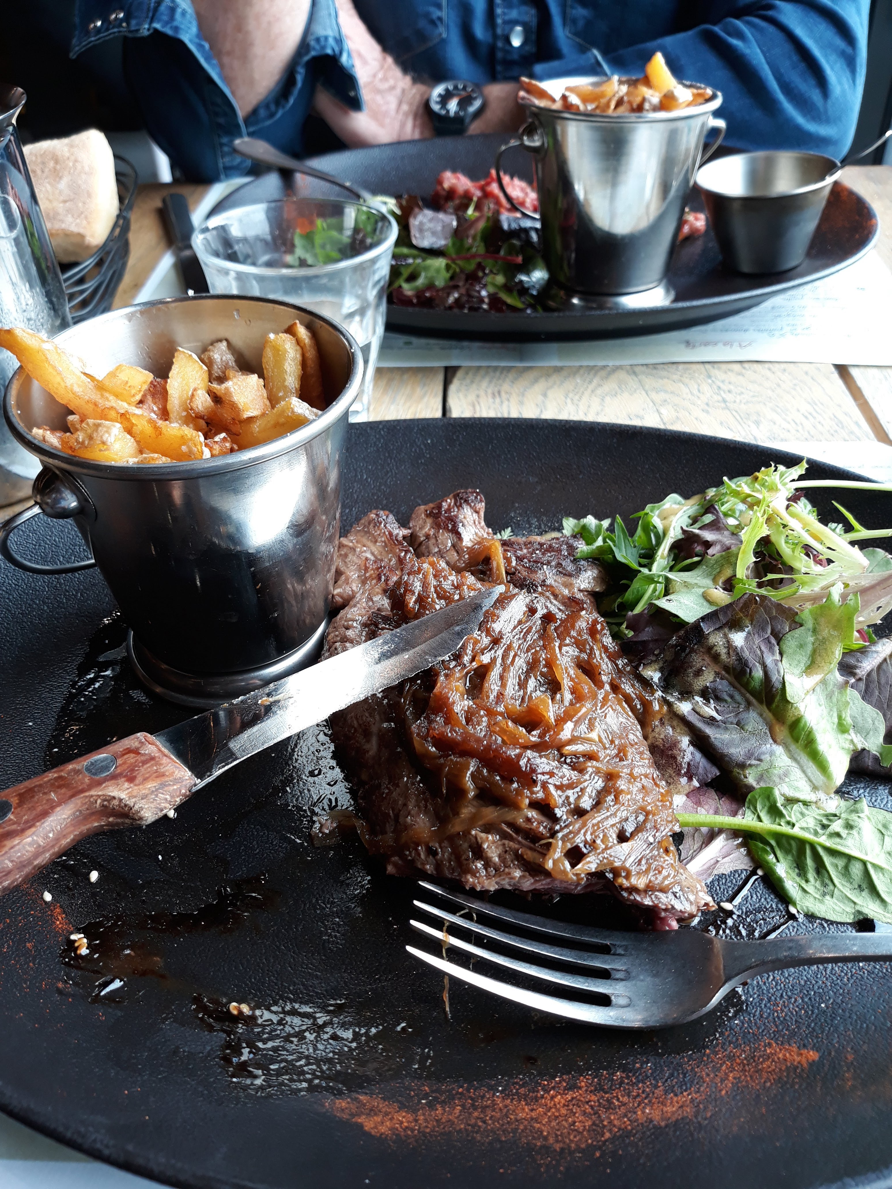 Très bien, assiette avec des produits de qualité il me semble, la viande cuite comme il faut, les frites fraîches et pas surgelés le prix raisonnable le service rapide et avec le sourire. j'ai enlevé une étoile par ce qu'il n'y avait pas de savon dans les toilettes