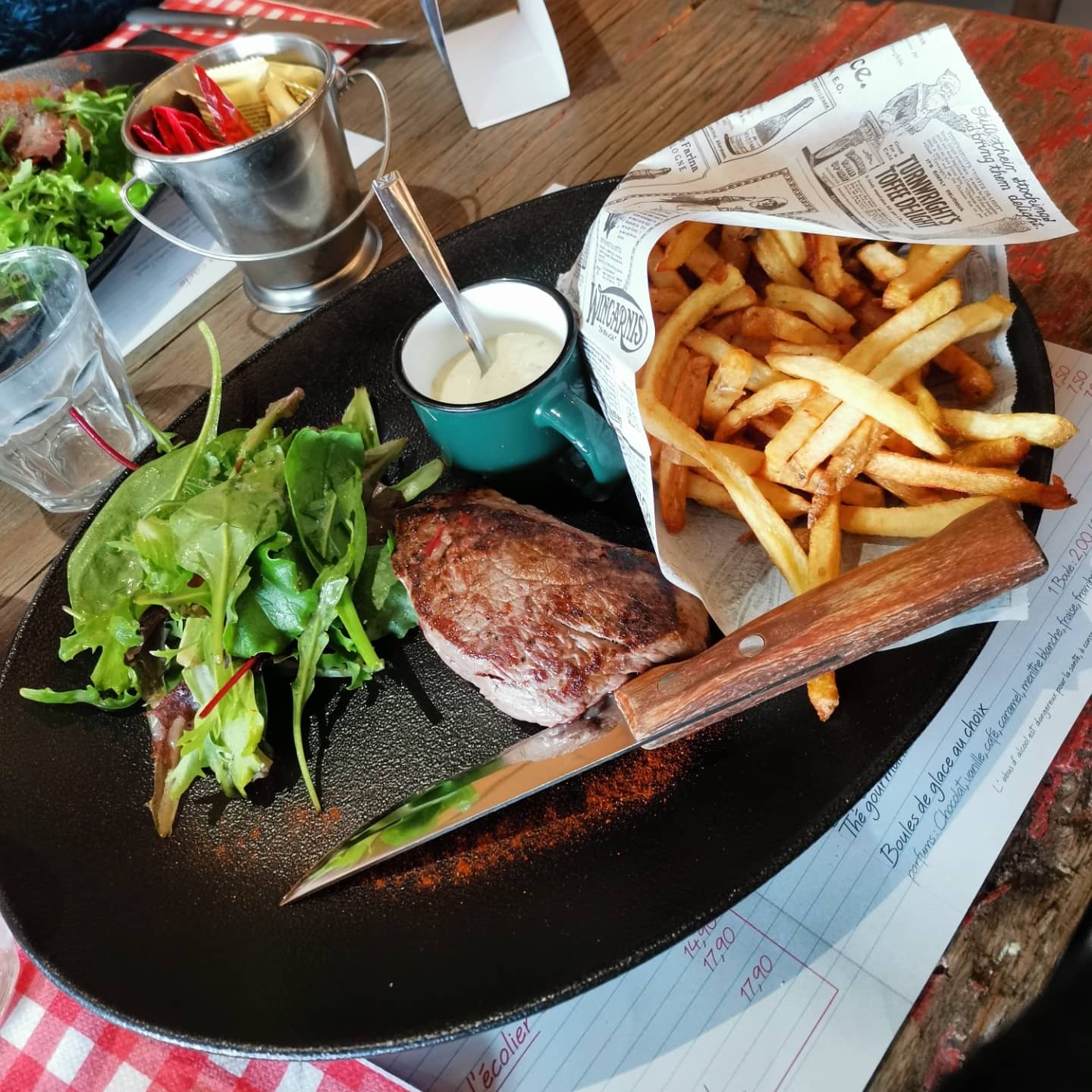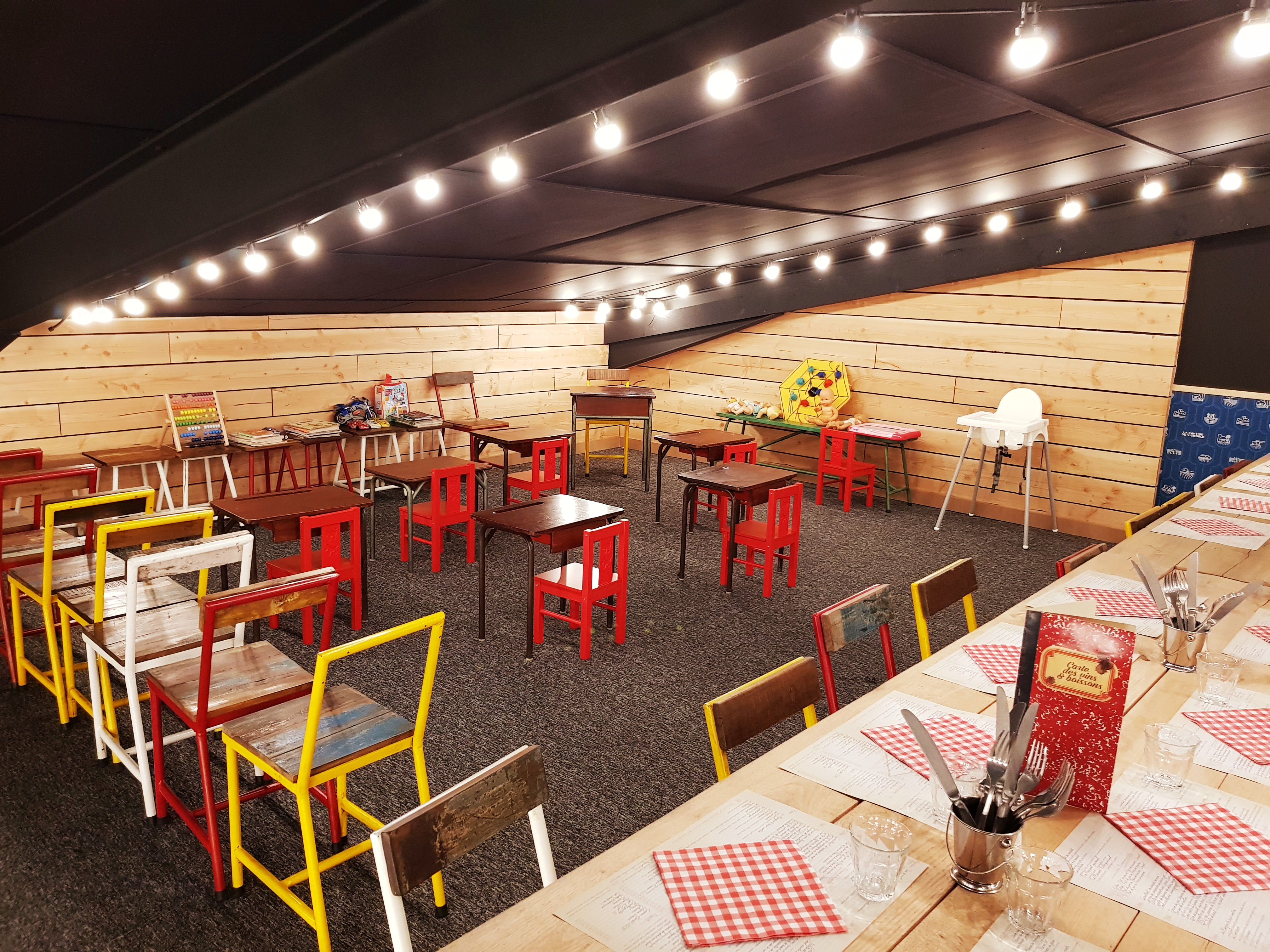 Endroit sympa pour se trouver autour d’une bonne table en famille ou entre amis. Équipe accueillante et souriante. Deco rétro qui nous ramène à l’école avec les chaises et les bancs en bois comme en classe. Une grande terrasse qui sera sûrement très agréable aux beaux jours. Chacun trouvera son bonheur sur la carte (viande, poisson, salade…). Des formules sont également proposées. Bien sûr les enfants ne sont oubliés avec un menu rien que pour eux avec une boisson, un plat, un dessert et une petite surprise. Petit bémol sur la propreté des sanitaires.
