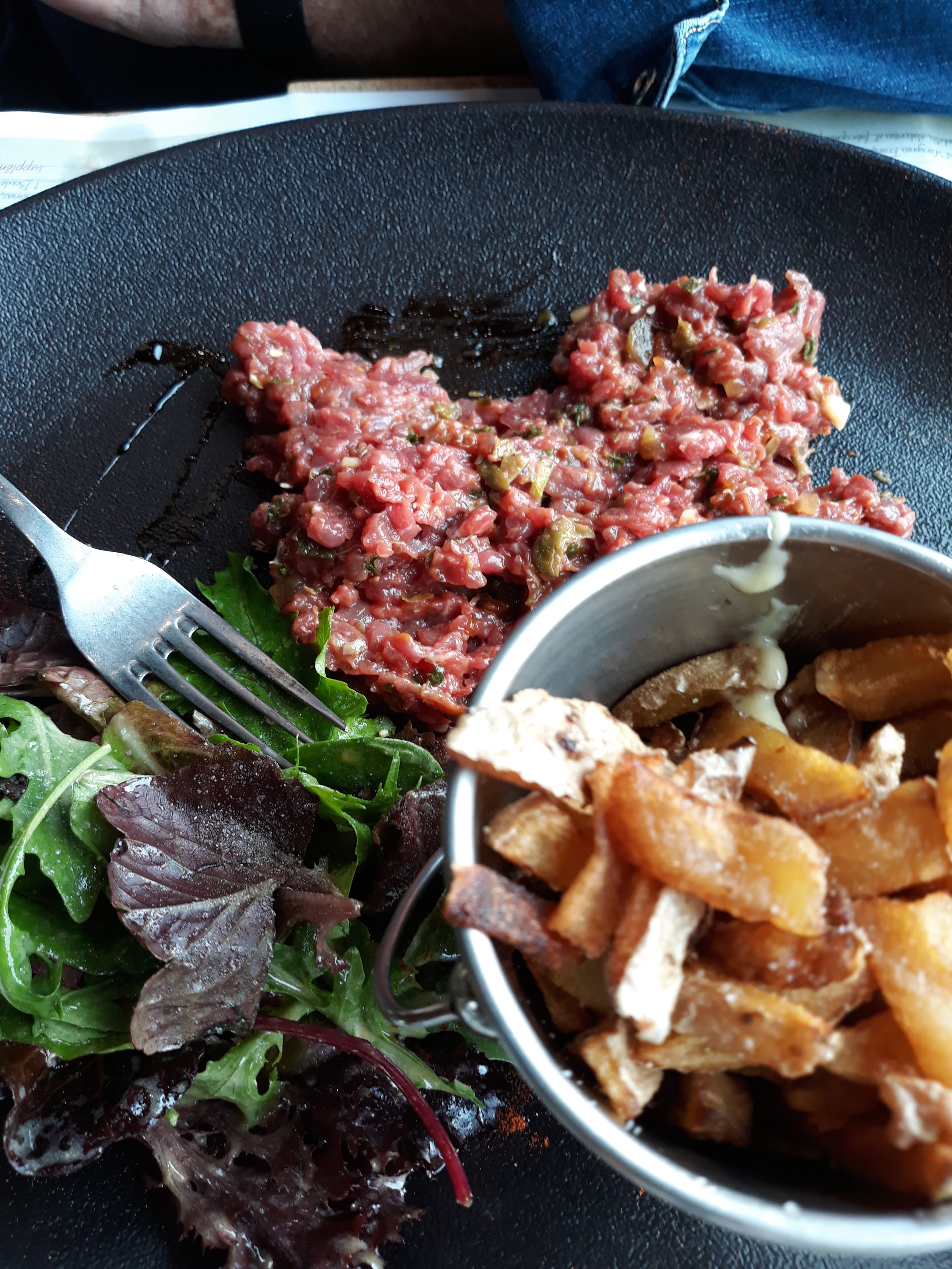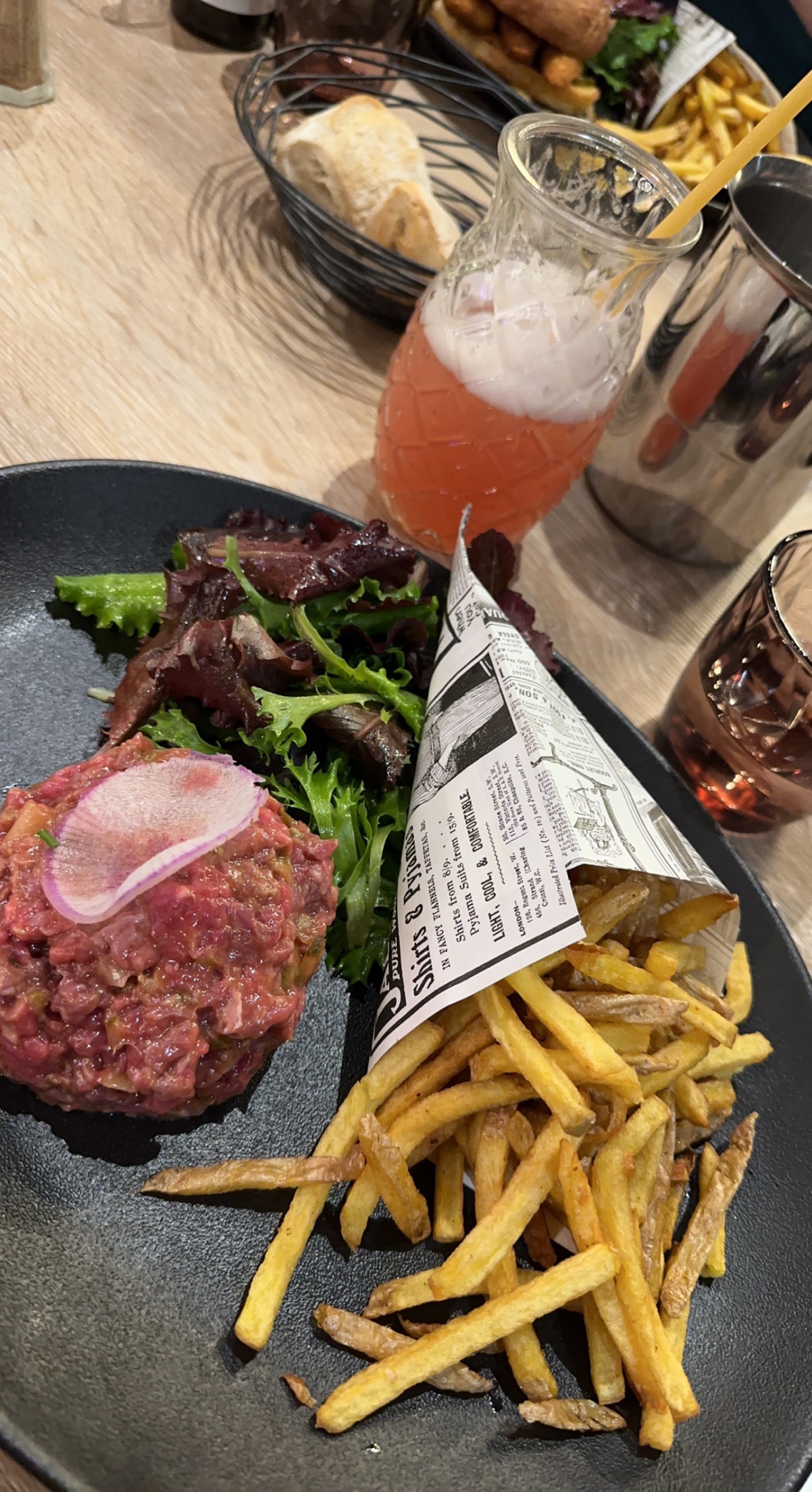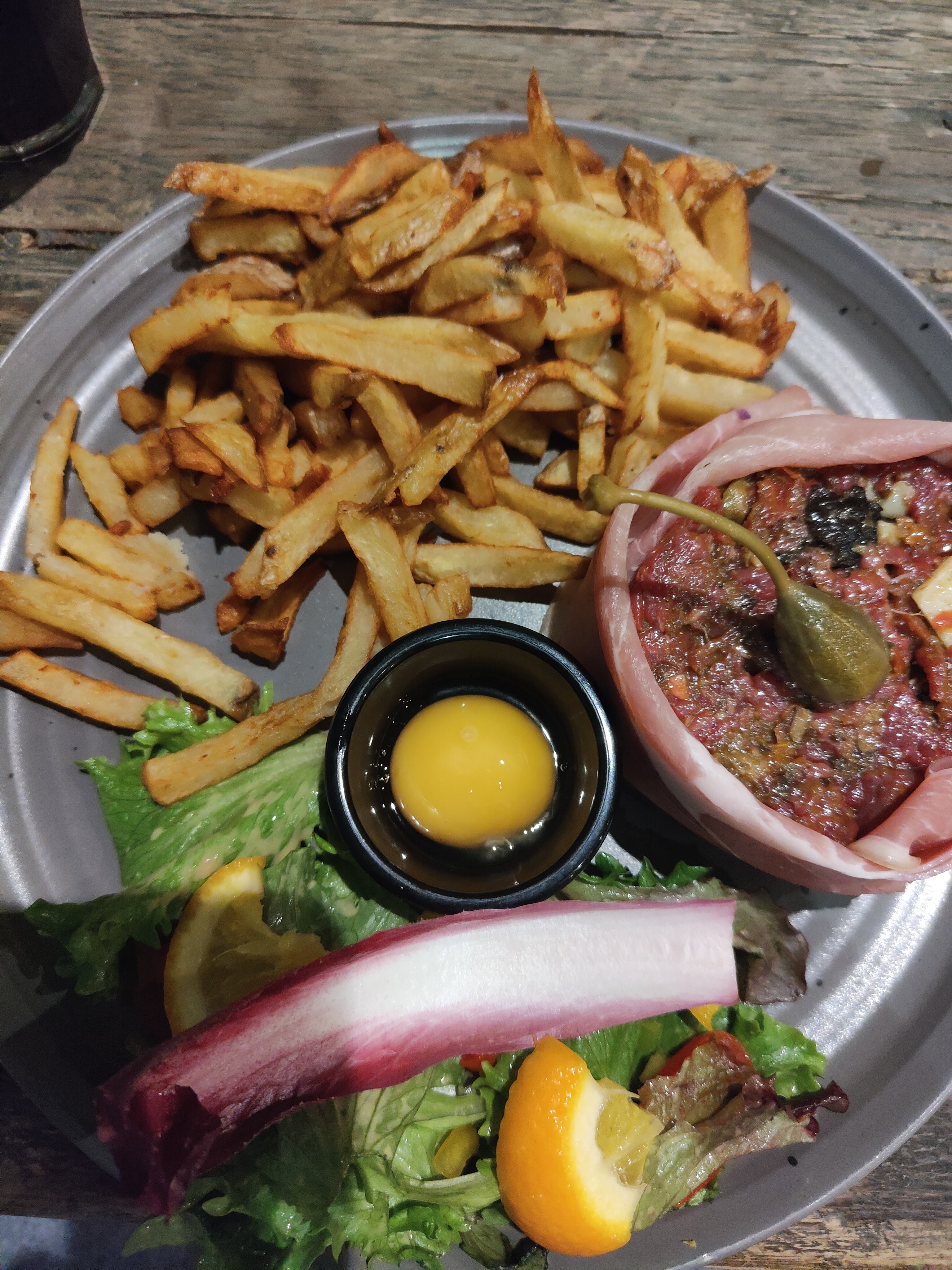 Une bonne adresse, le thème et la décoration sont très sympa tout comme le personnel, plutôt amical et professionnel. De bons plats très copieux sont proposés à la carte. Je recommande le tartare (en photo) et également le burger ! Pensez à réserver. Le seul bémol, du moins le jour de ma visite, de nombreux anniversaires (un samedi soir) pas l'idéal pour diner tranquillement, d'où les 4 étoiles au lieu de 5.