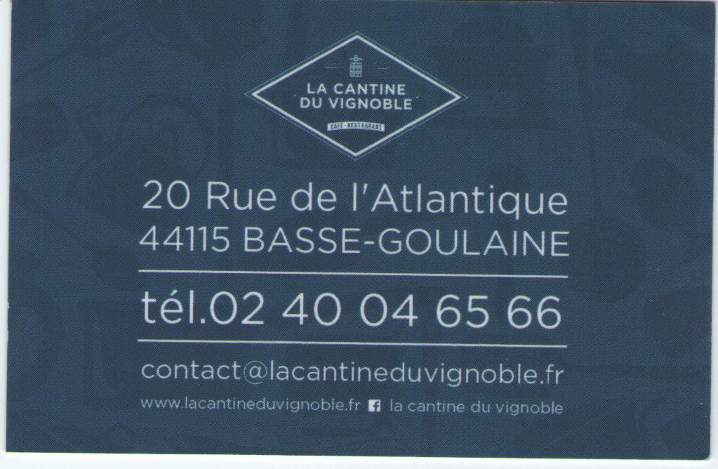 Voici toutes les informations sur le Restaurant La Cantine du Vignoble qui ce trouve au 20 Rue de l'Atlantique, 44115 Basse-Goulaine (44). Sur cette fiche vous trouverez les photos, l'adresse, les horaires d'ouverture, le numero de téléphone et les avis clients.Vous pouvez églement rédiger un avis si vous le souhaitez en bas de page.