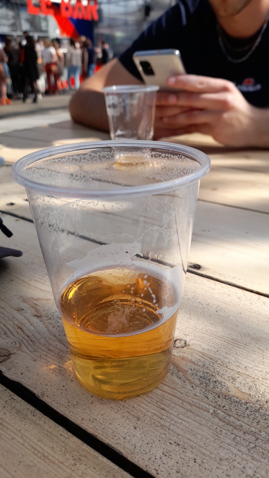 Le rdv indus' branchouille de Nantes (baby, transat, terrain de boules, tapas, etc.) Pelforth blonde facturé 3.50 au lieu de 3.00 mais rien de surprenant dans ce type de spots 😁😁 A quand des gobelets réutilisables ???