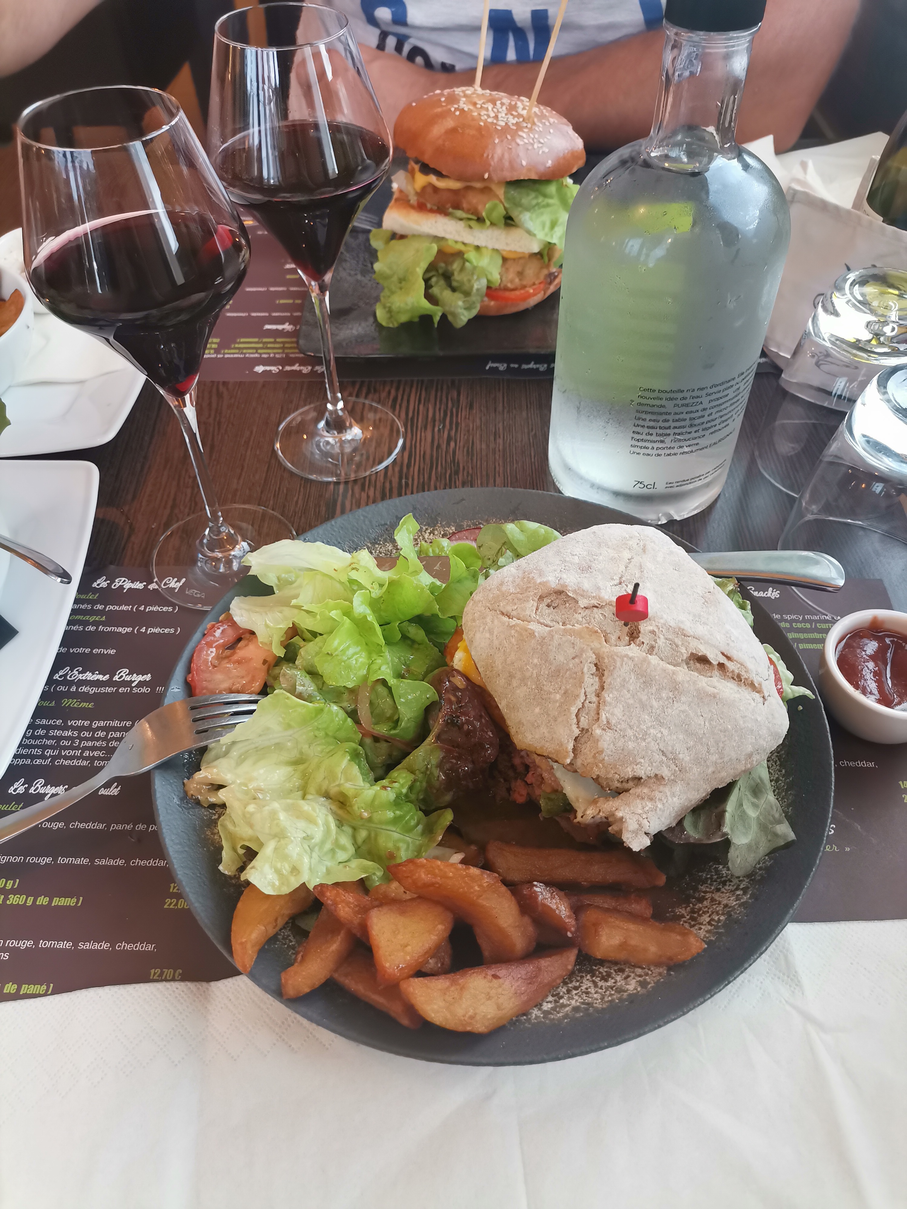Excellent burger et très bon crozes hermitage pour accompagner!!
