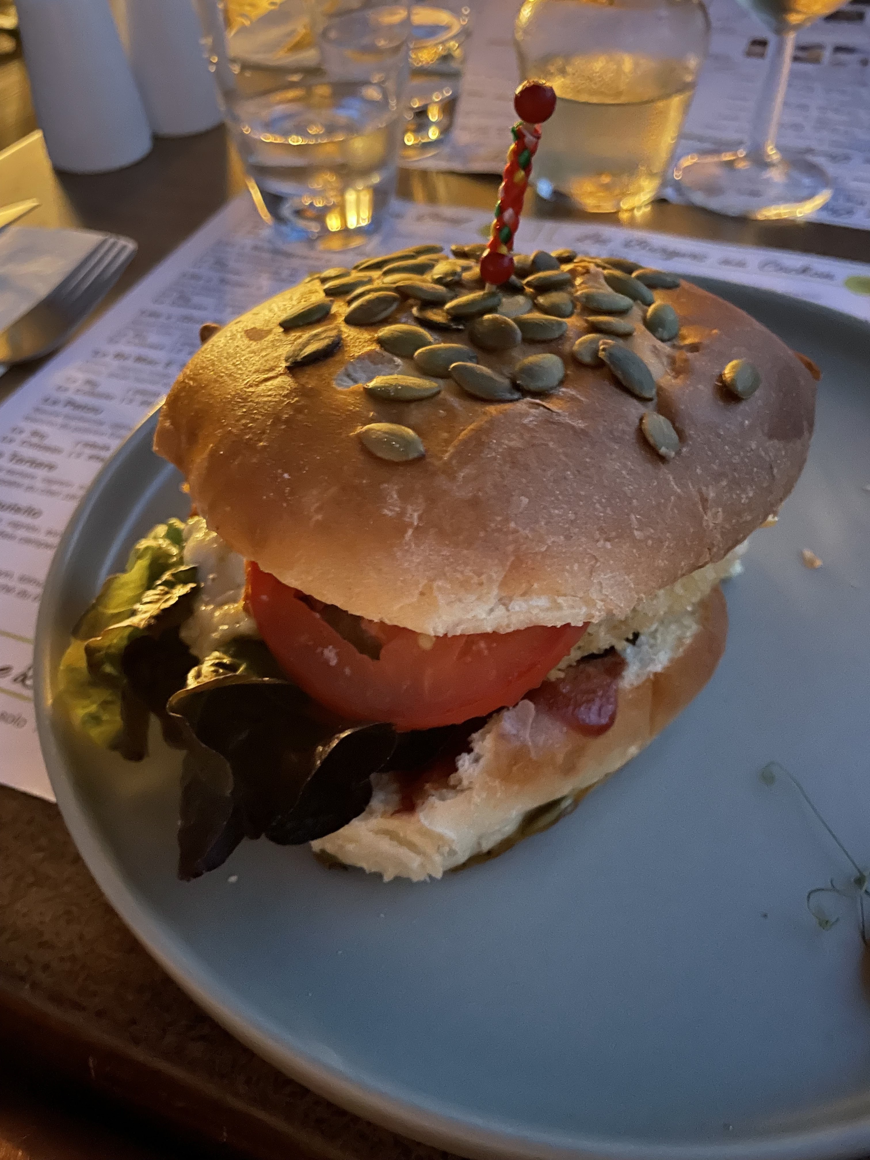 Très bon accueil et cadre sympa. Merci pour les options végétariennes. Ce n’est malheureusement pas courant dans tous les restaurants. Point d’amélioration : pouvoir prendre tous les burgers en version végétarienne…