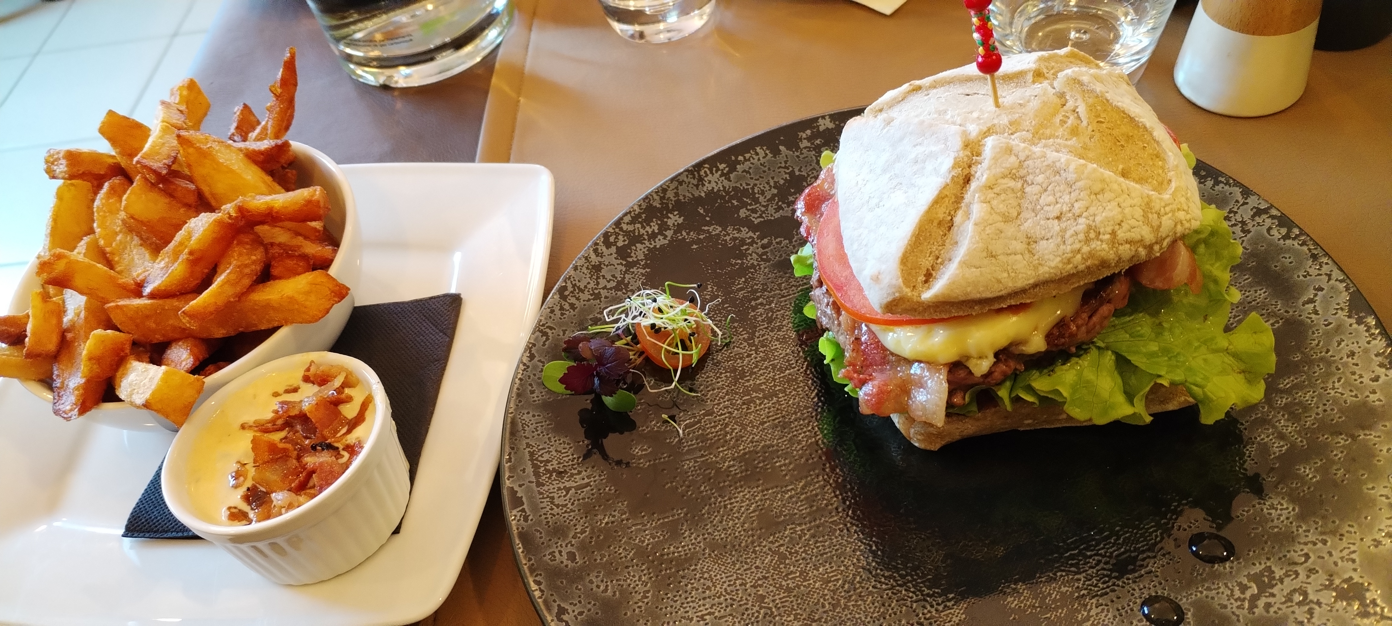 Excellent Burger fait maison, avec le choix de la taille du steak. Terrasse sympa Endroit plutôt calme Manque juste un peu d'ambiance, mais comme nous étions de passage c'était peut-être juste une impression. Qualité / prix au top 👍🏼