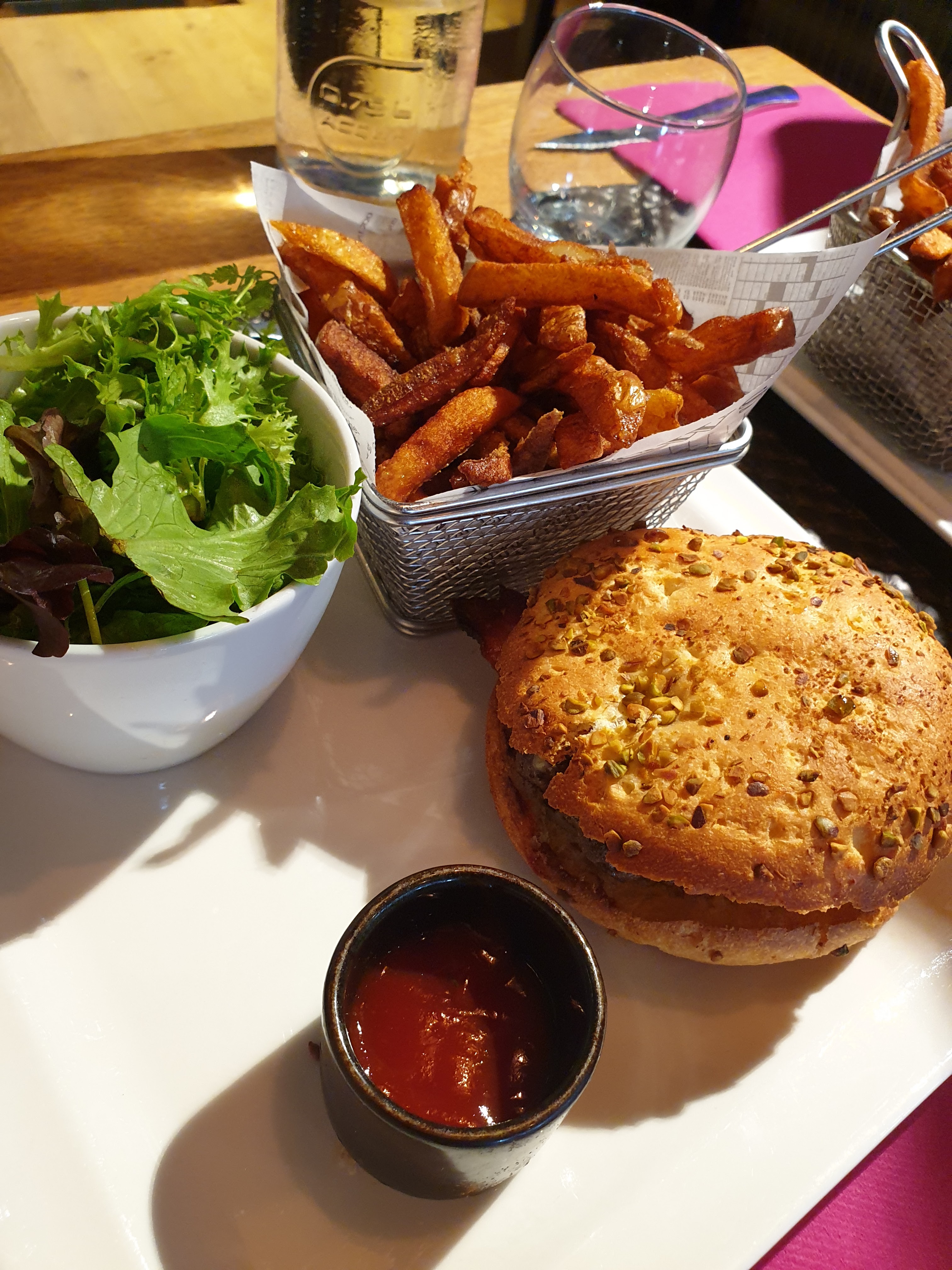 J'ai savouré un super burger, c'était véritablement un régal. Ma note est assez basse compte tenu du plat végétarien qu'à pris une de mes invitées : j'ai trouvé que c'était du vol. Très peu de légumes, juste du féculent et un petit pot de sauce. Mon invitée était contrariée et je la comprend. Au final un restaurant qui ne fait pas l'effort sur l'offre végétarienne alors que les possibilités ne manquent pas. Je me suis régalé et c'est vraiment à regret que j'ai été embarrassé alors que je pensait avoir fait un bon choix. Si plus est, le tarif avoisine les 18 €. Du vol.