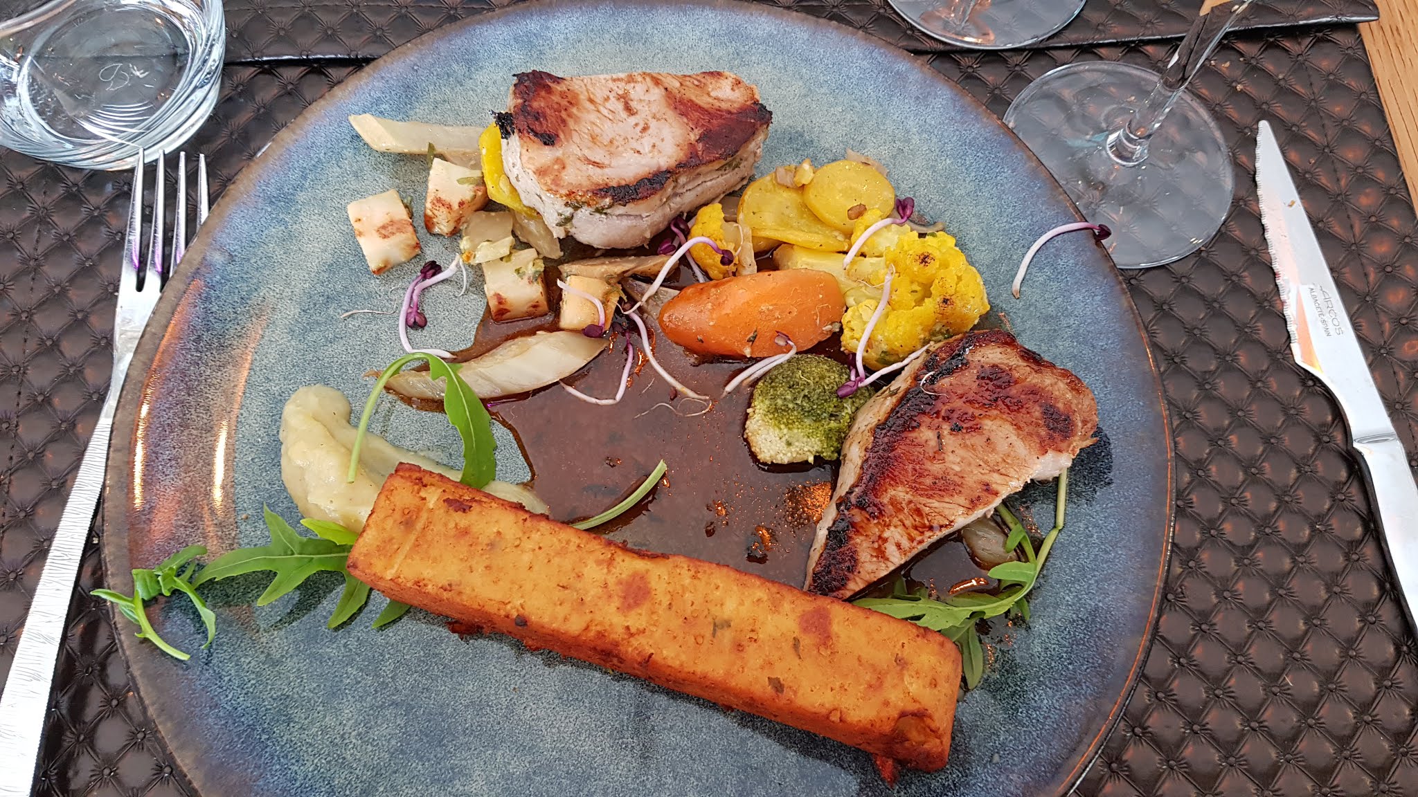 Repas délicieux, cadre magnifique, j'ai pris le foie gras en entrée succulent en plat le porc ainsi que la tarte au citron myrtille au dessert un régal !