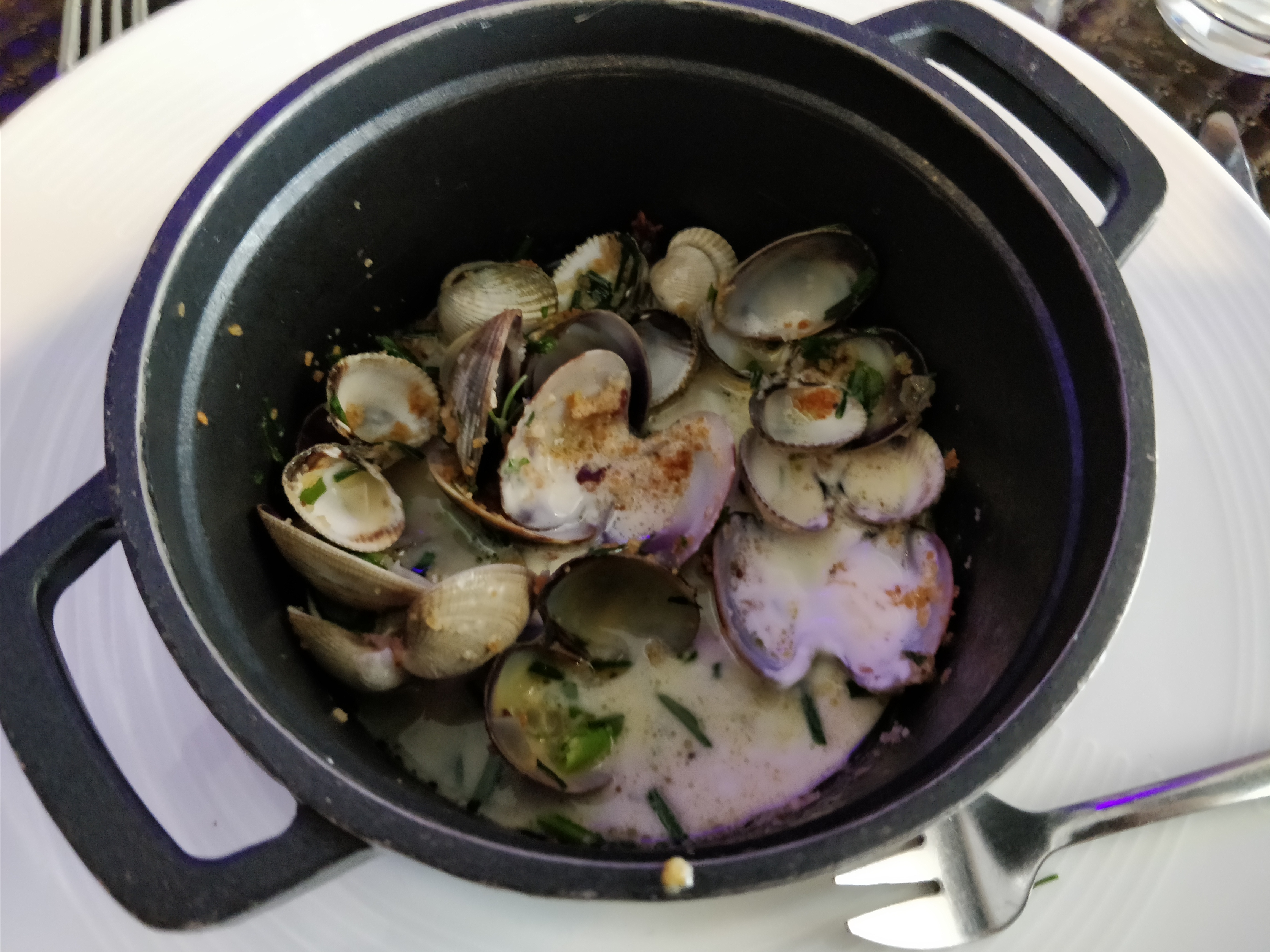 Excellente cuisine d'où les 4 étoiles. Prix un peu élevé en regard des quantités. 15 coques en entrée (voir photo), je reste sur ma faim. Ris de veau parfait et dessert correcte mais un peu cher. Service moyen pour ce standing. La salle est belle et les toilettes sont originales et très belles