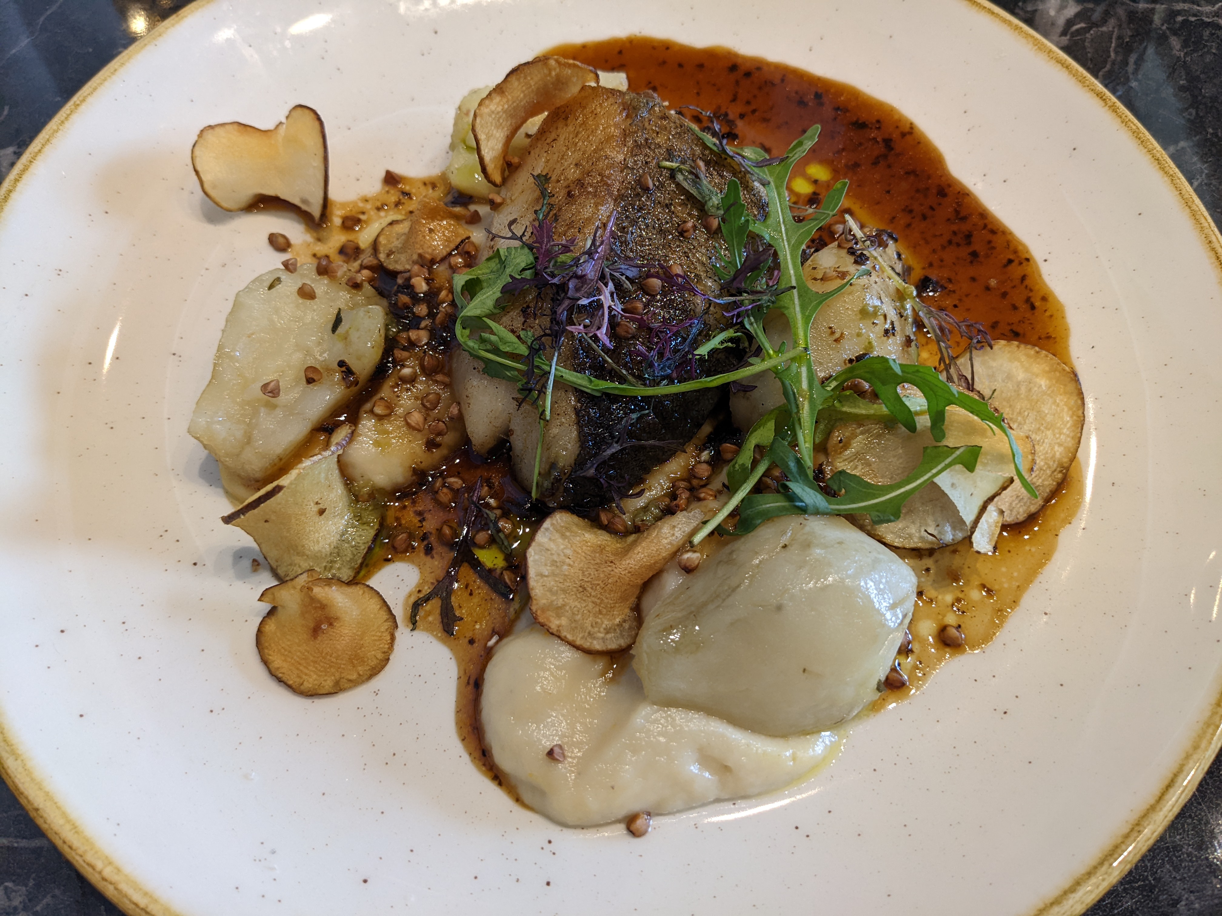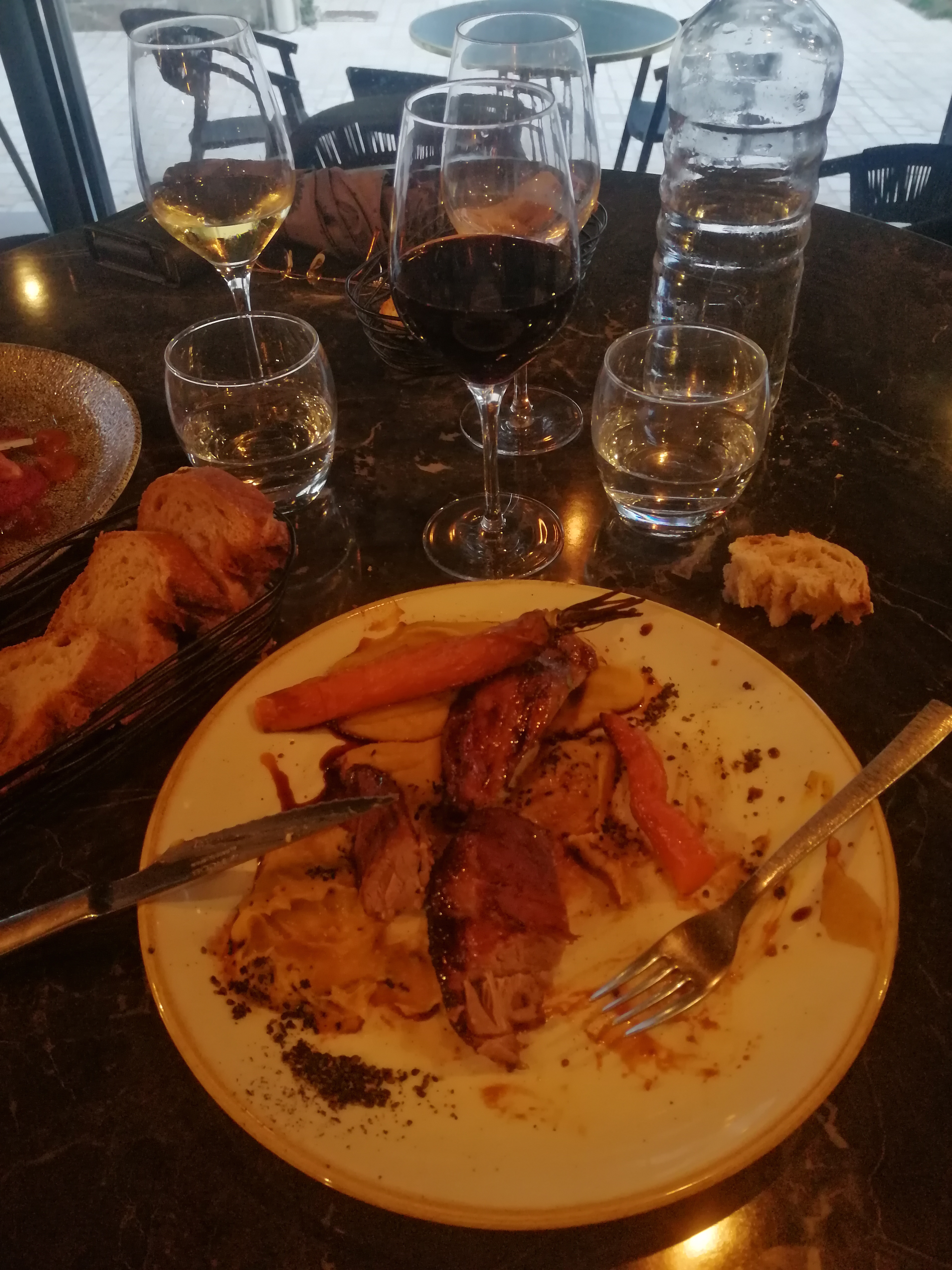Super endroit a côté de Nantes, entrée lentilles avec oeuf poché et plat poulet avec riz a l'encre de seiche. Un super repas (entrée / plat / dessert) pour 20€, je n'avais plus faim :)
