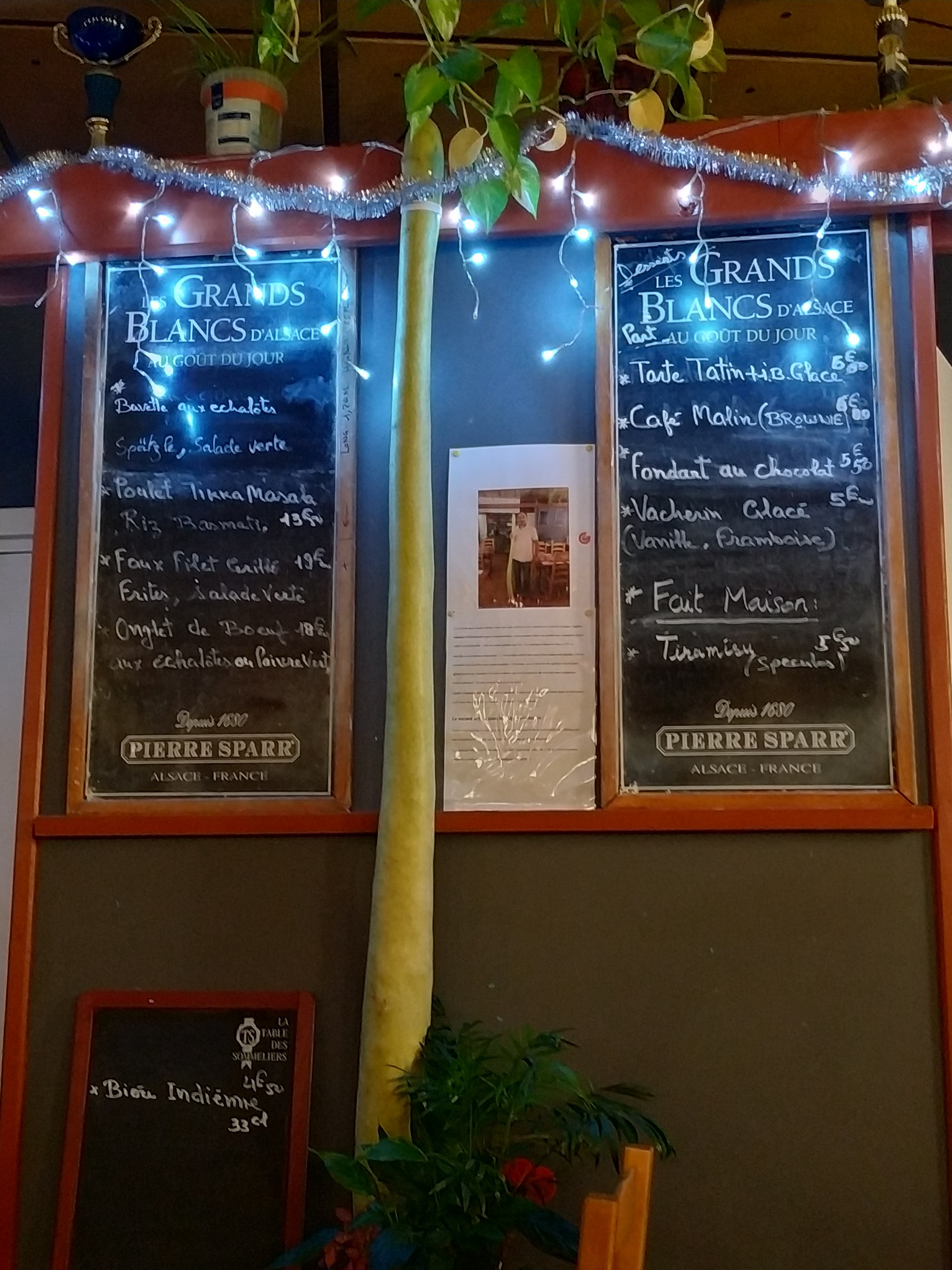 Découverte puisque 1ere fois à Strasbourg pour le marché de Noël ! Sympa, plein d'humour et bonne pizza aux crevettes persillade. Tiramisu maison super! Recommandation vivement ! 🌈😜 Courgette géante 😵