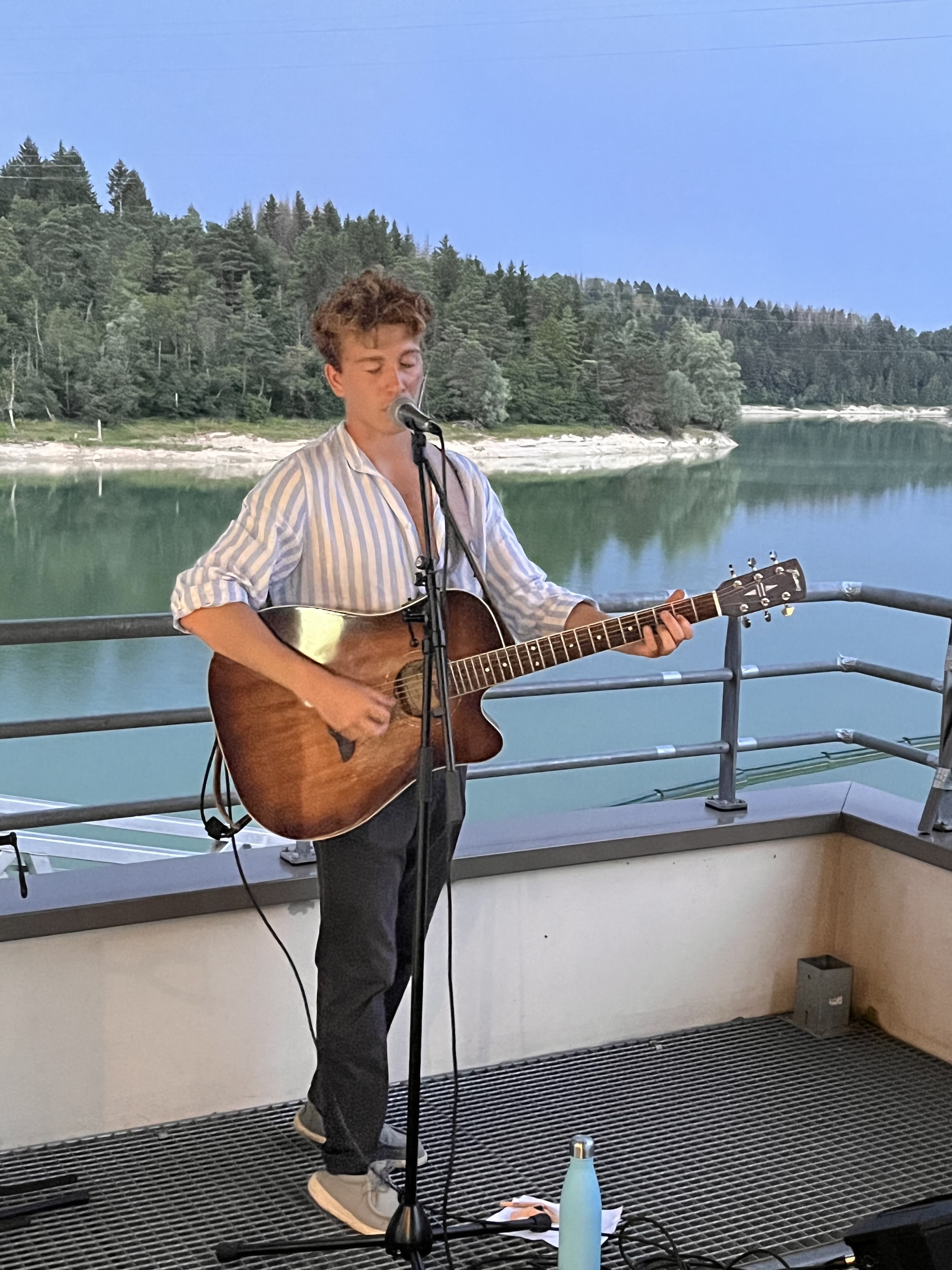 Super accueil malgré les petites galères qu’ils ont Eu en cuisine !!!! Mais on est en vacances donc prenons le temps de vivre et de discuter avec le personnel !!! Allez maxime tu tiens le bon bout 🤓 C’était super bon et promis la prochaine fois je goute la glace au foin !!! De retour vendredi pour le petit concert de mathis Philip….et bien malgré la pluie, l’orage, le rapatriement à l’intérieur avec le public qui donne un coup de main et surtout le personnel au top(bravo maxime tu tiens le bon bout) et Sonia au top. Donc merci pour vos soirées atypiques où on ne s’ennuie pas 😍😍🤓