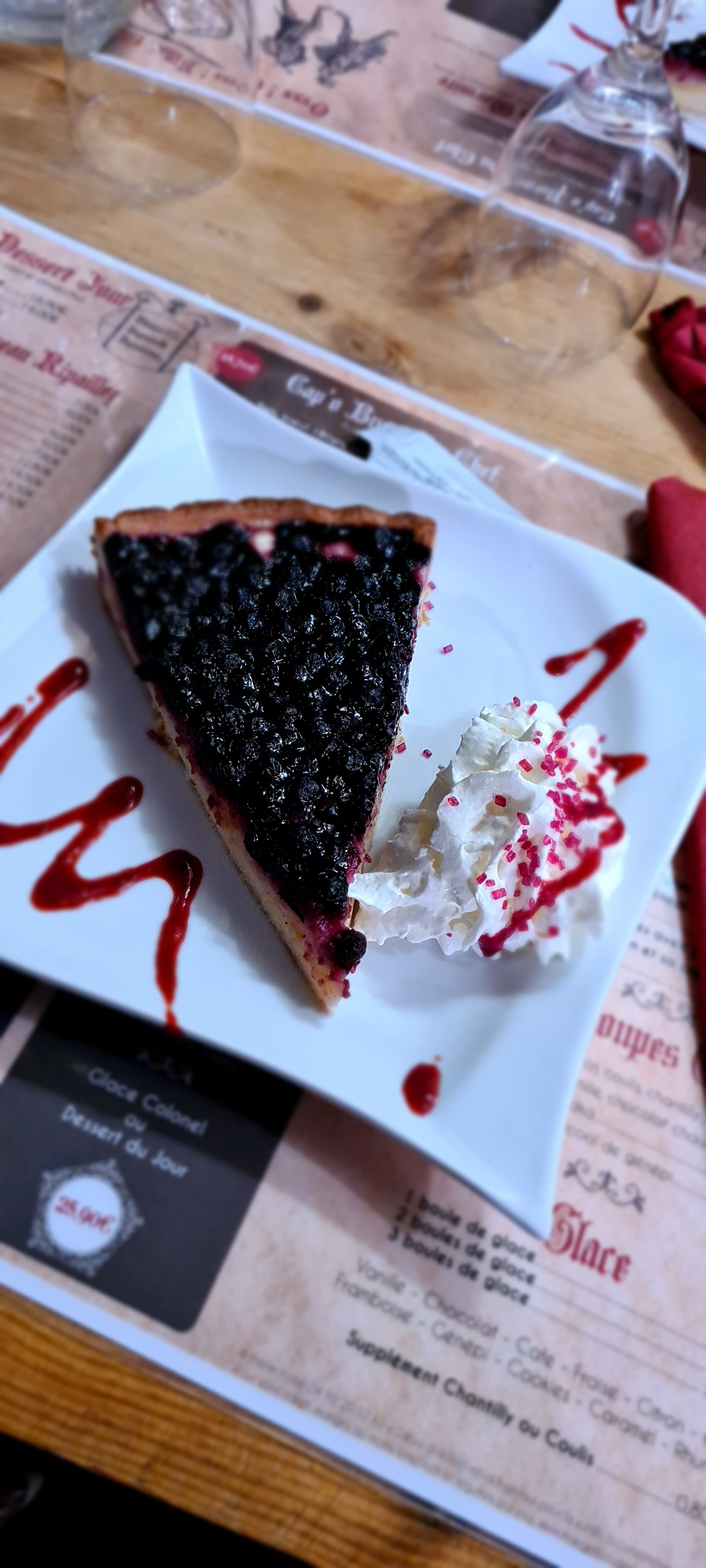 Une pièce du boucher demandée saignante qui arrive bien trop cuite et toute fine. Les frites arriverons quelques minutes après avec une assiette pour pouvoir découper la viande... Une truite aux mirtilles. La truite bien mais la sauce est sans saveur et la garniture, du riz dans un ramequin de cantine trempe dans une crème fraîche. Le tout pour près de 40€ Vraiment décevant