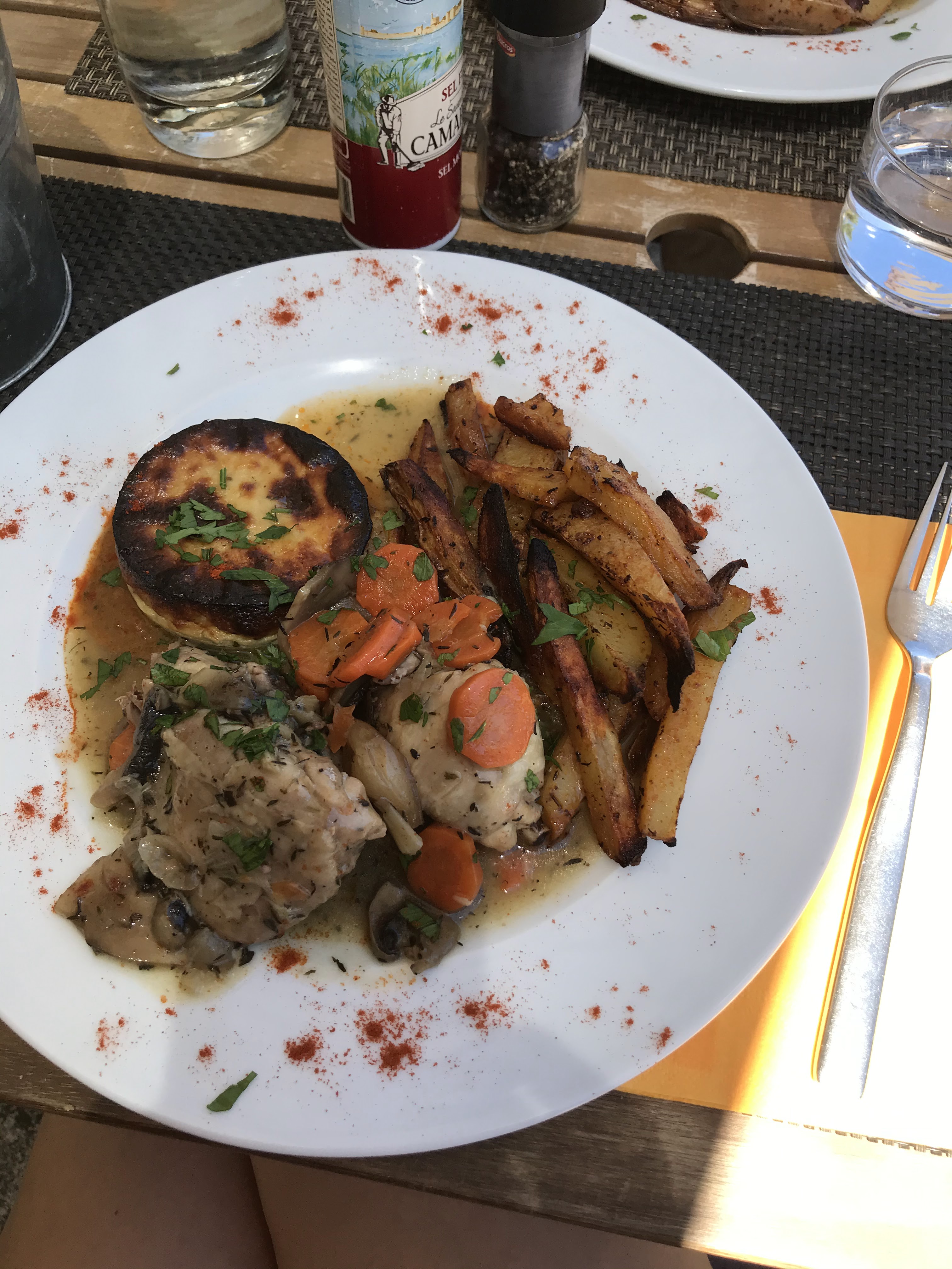 Endroit à l’écart de la folie des rues de Arles, à côté du fleuve et entouré de vieilles pierres. Accueil excellent, plats exquis et portions généreuses ! À refaire !