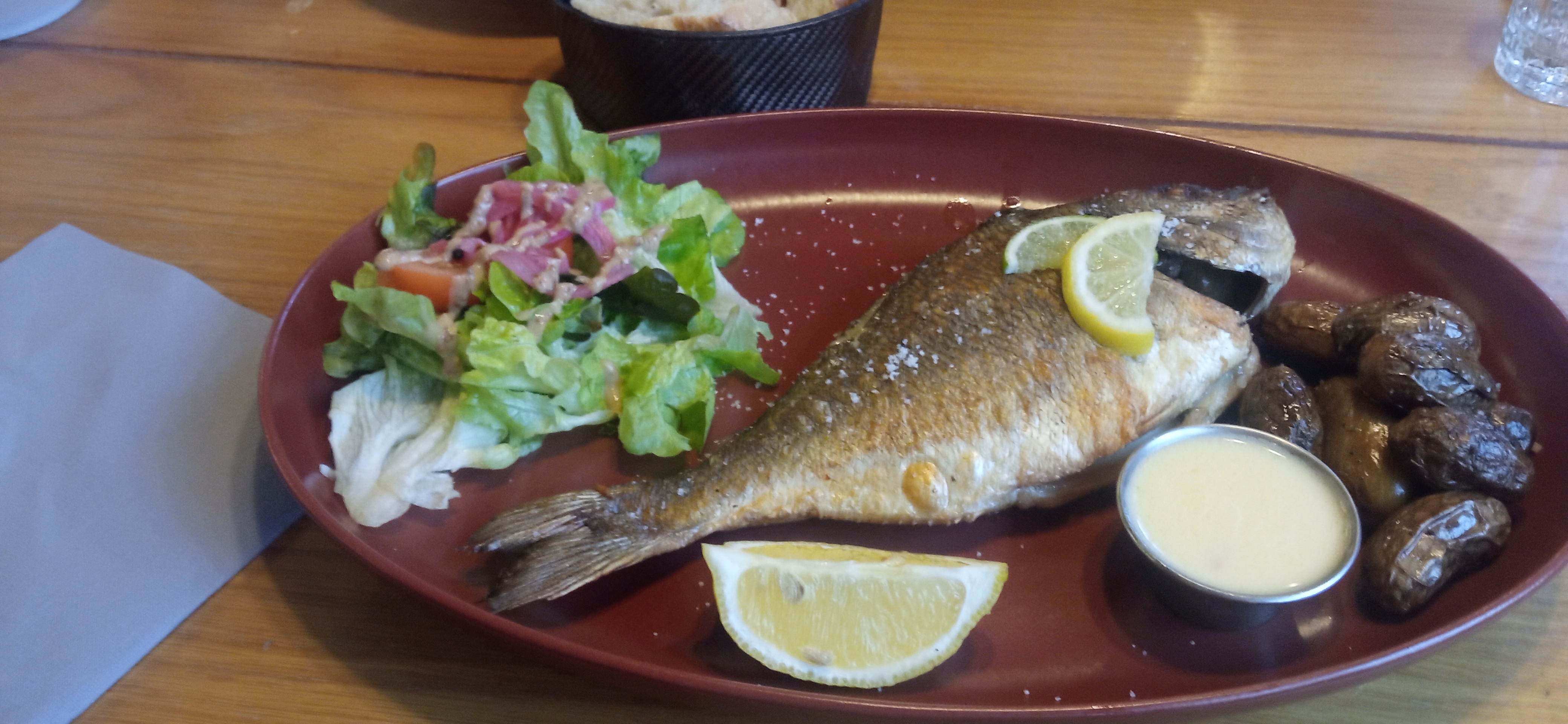 Tout était très bien : de l apero avec des huitres excellentes, une soupe de poisson et en plat principal, un maquereau entier. A recommander, rapport qualité prix exceptionnel.